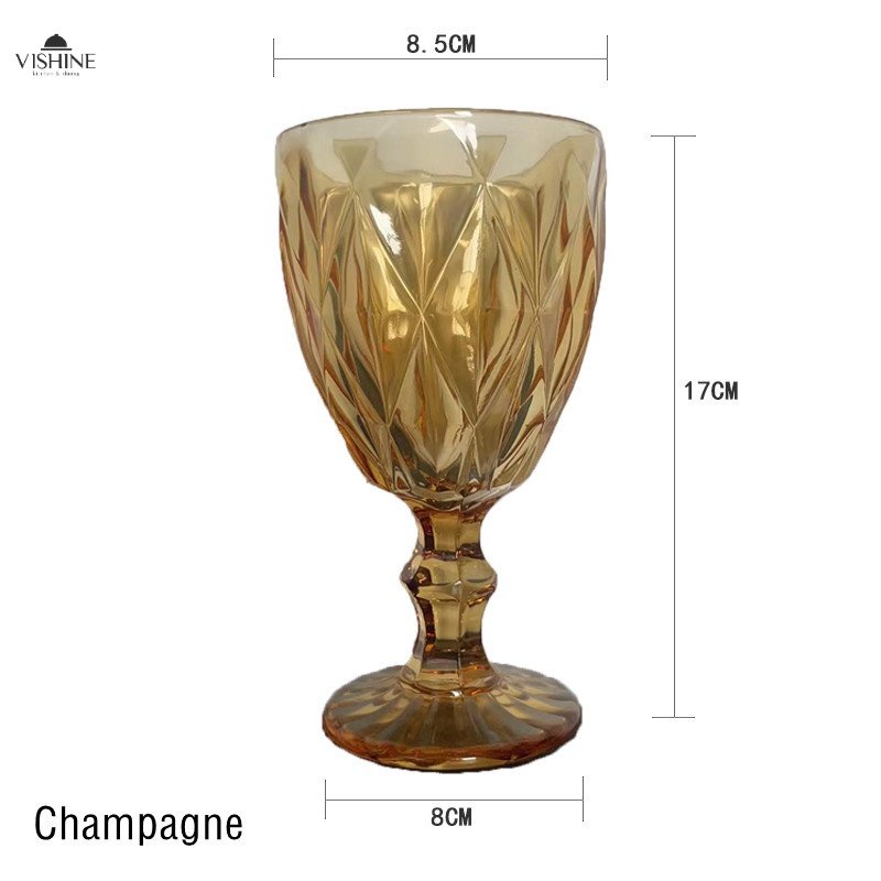 VISHINE 1pc Diamond Pattern Cut Goblet Water Glass Crystal Wine Glass Glassware 350ml/235ml Goblet