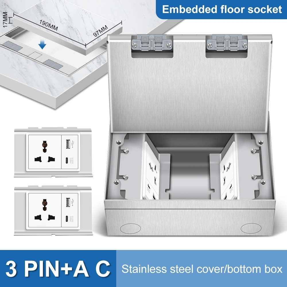 VISWE Recessed Floor Socket Dual Row Multiple 3-Pin & 2-Pin Sockets with USB & Cat6 Rust Proof K11D Series