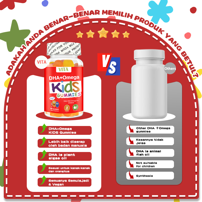 VITA OMEGA DHA Kids Gummies Supports Healthy Brain Function Vitamins for Kids MultiVitamins 60pcs