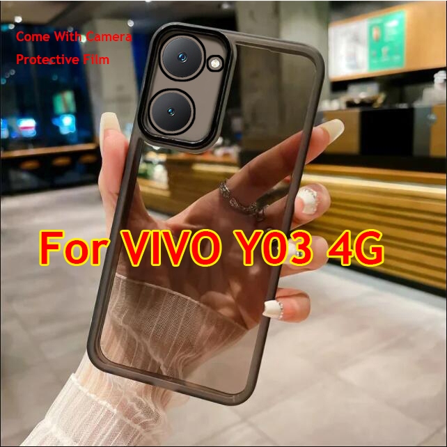 VIVO Y03 4G VIVOY03 Y 03 Y18 Y18S 4G Clear Shockproof Case with Camera Lens Protector Film Shockproof Phone Back Cover Casing