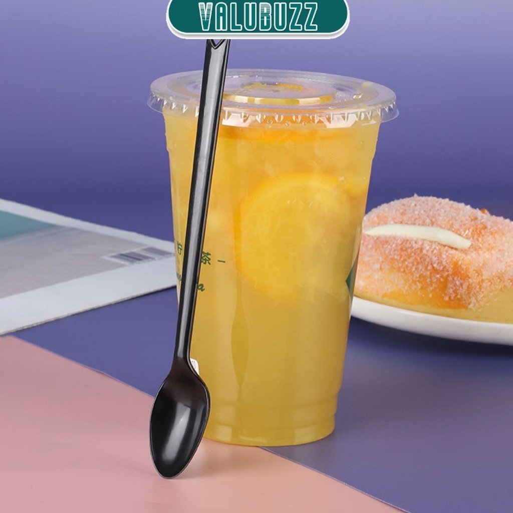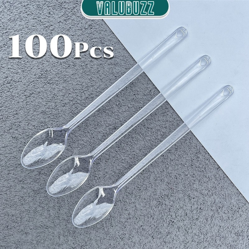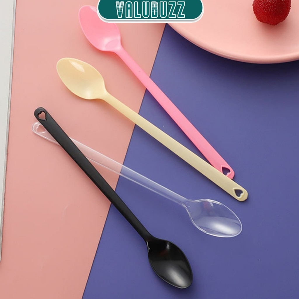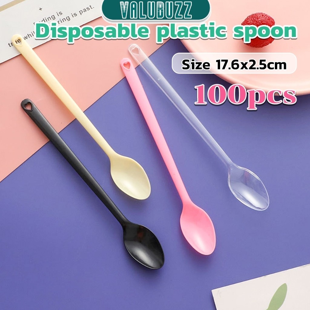 VLB 100pcs Disposable Plastic Spoon Colored Long Teaspoon for Dessert Milk Tea Sorbet