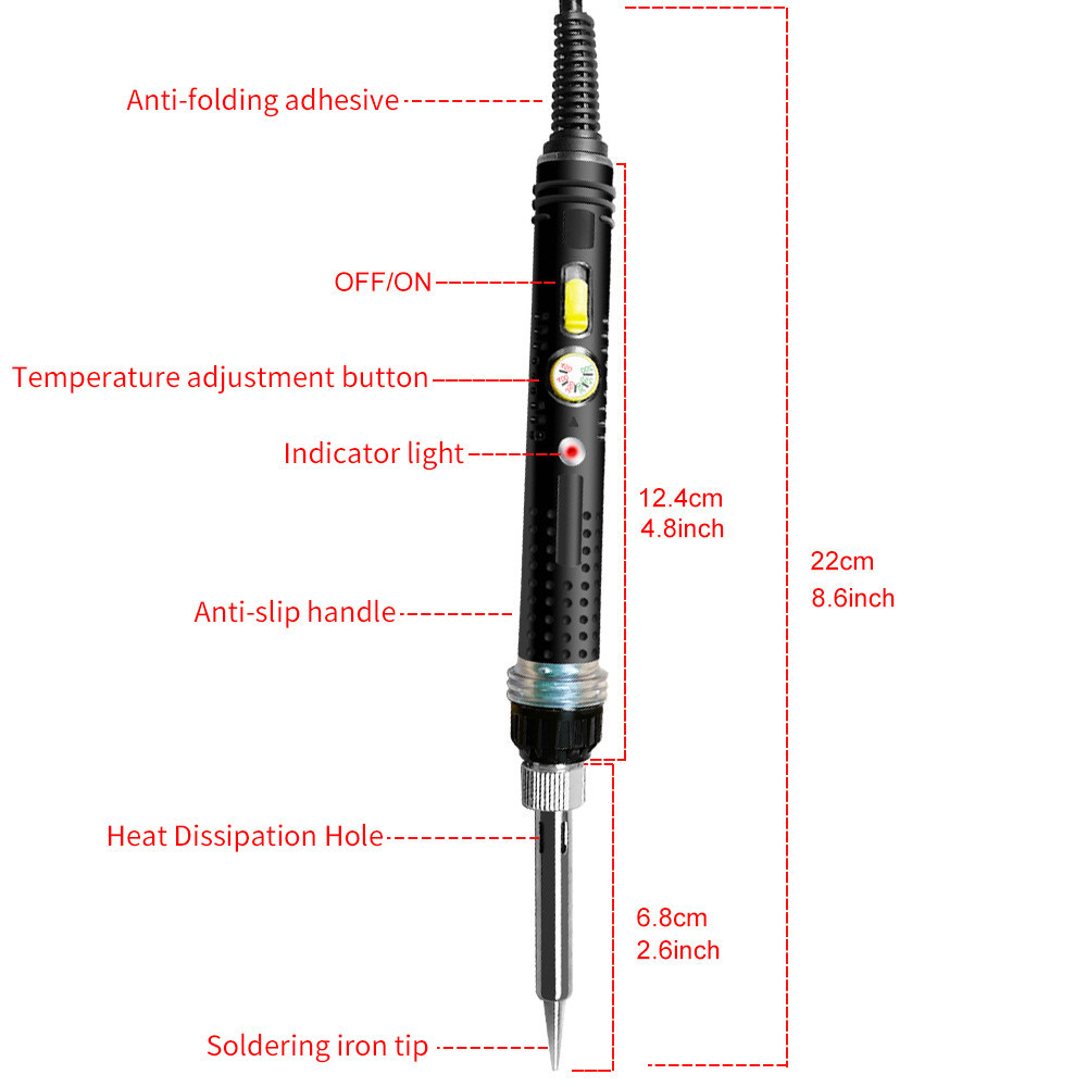 VOKTTA Soldering Iron 60W Adjustable Temperature Electric Solder Iron Rework Station Mini Handle Heat Pencil Welding Repair Tools