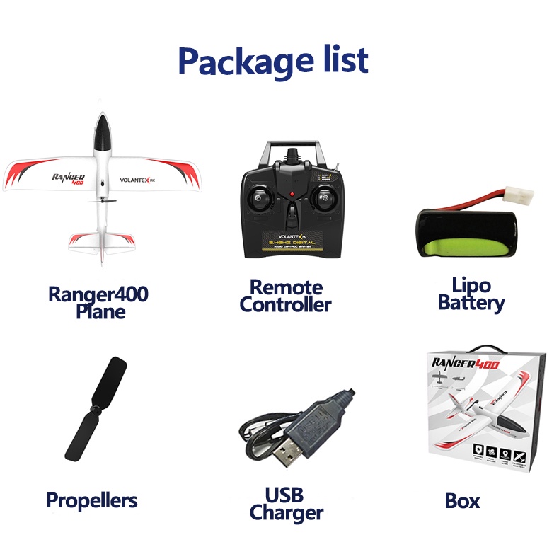 VOLANTEXRC RC Plane 2.4Ghz 3CH 6-Axis Gyro Fixed Wing Ranger400 EPP Foam Glider Plane Control One key u-turn RTF