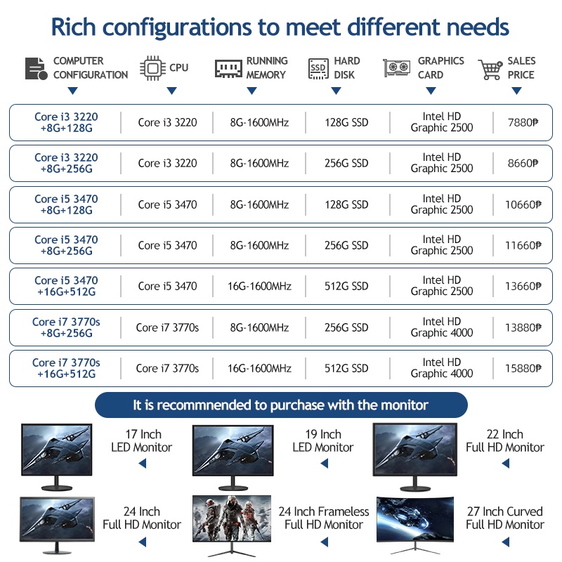 VOVOVA Desktop Computer set pc Inter i7 Full Set PC Set Gaming computer/17-27 inch HD Monitor