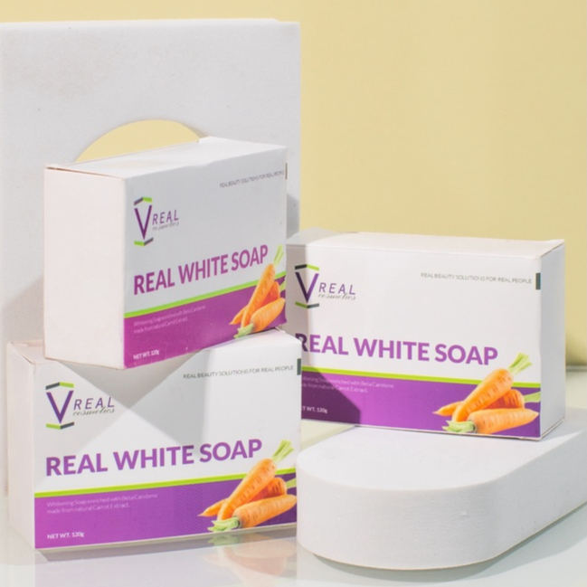 VReal Cosmetics: Real White Soap: Whitening Soap enriched with Beta Carotene