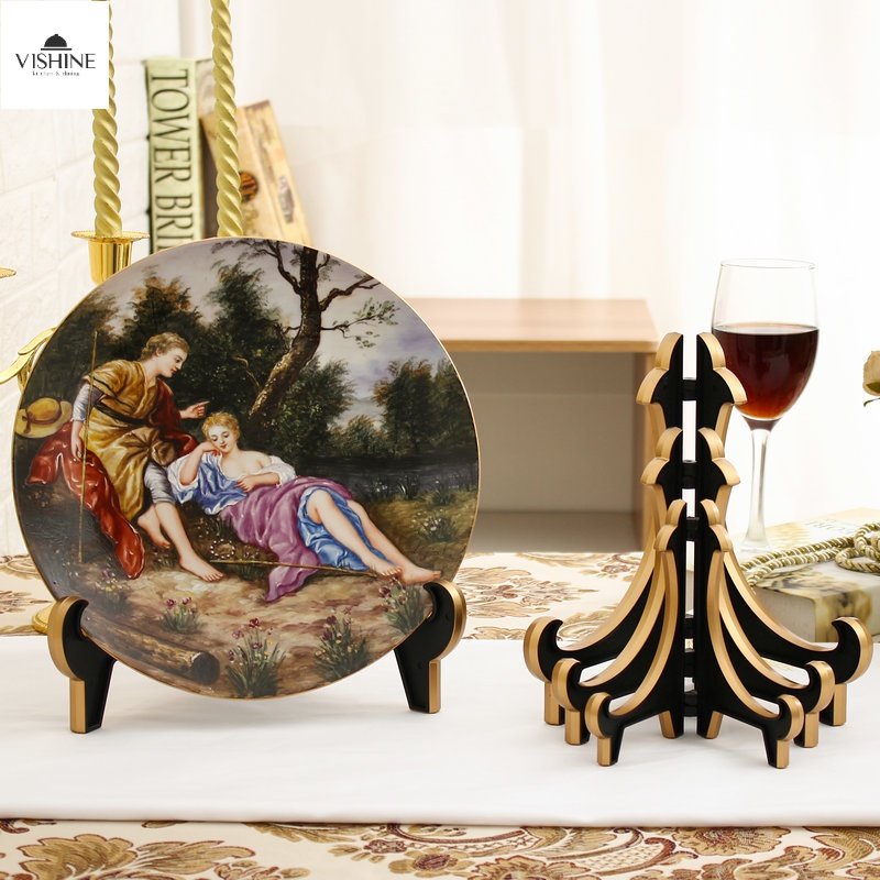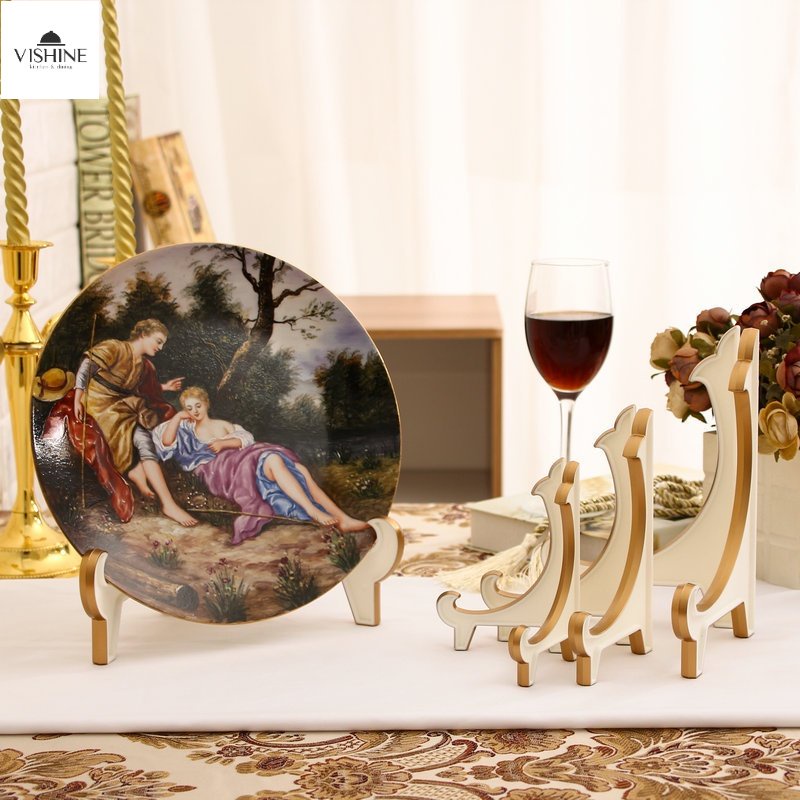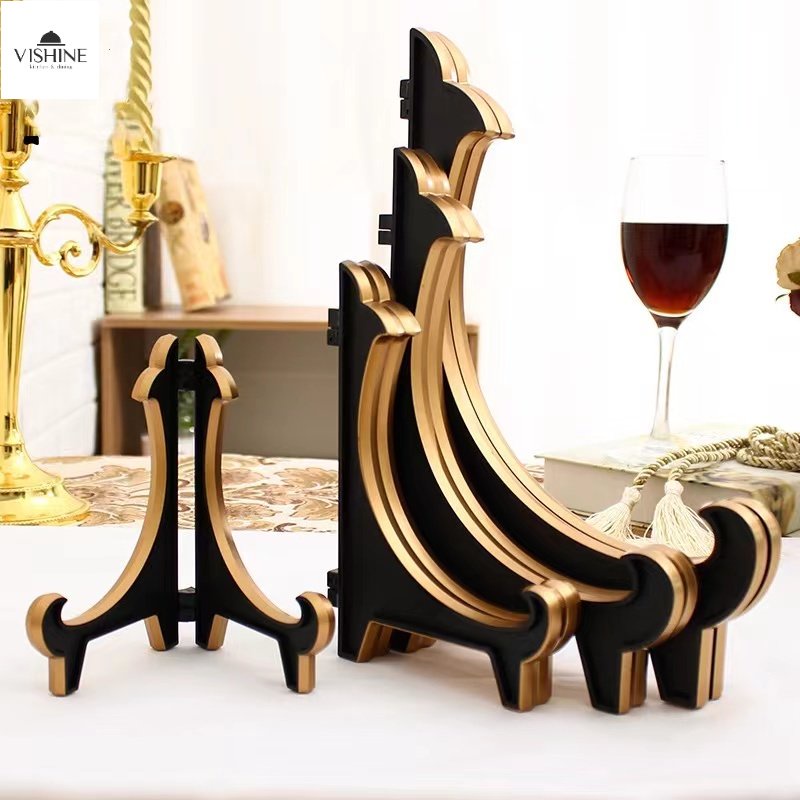 VSHINE Decorative Plate Shelf Gold Plastic High-end Hanging Bracket Display Dinner Plate Shelf Stand