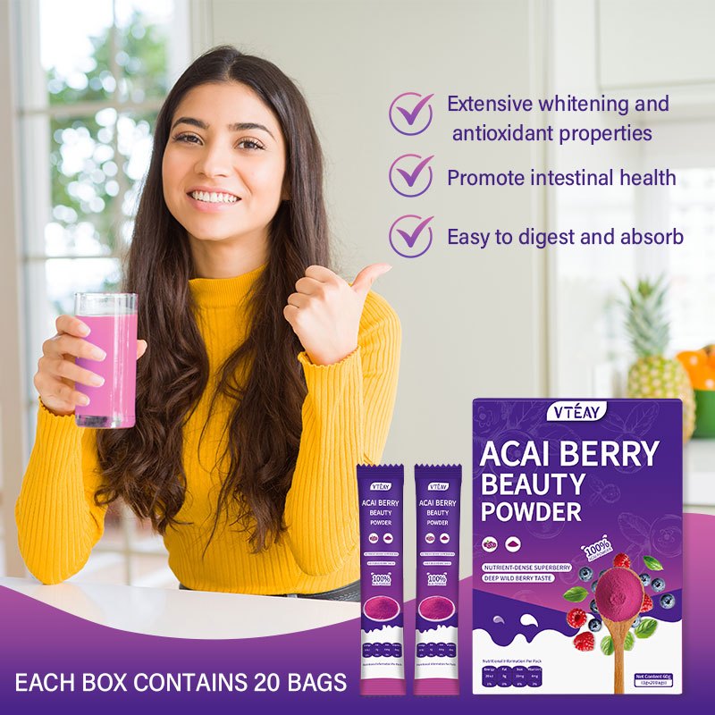 VTEAY Acai Berry Beauty Powder Natural Organic Juice Drink for Skin Whitening & Anti-aging Detox FDA