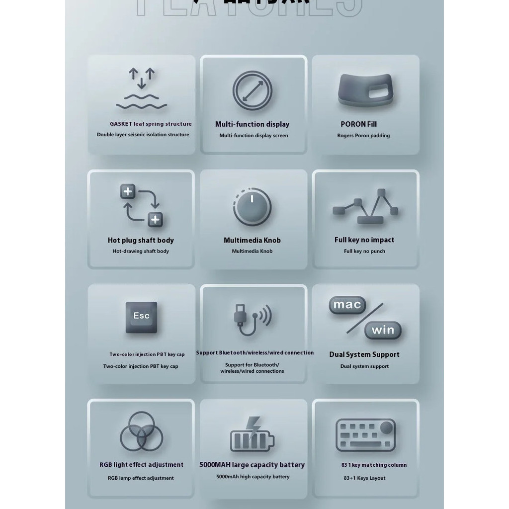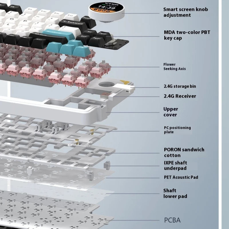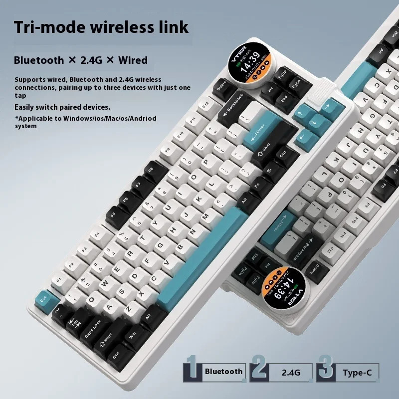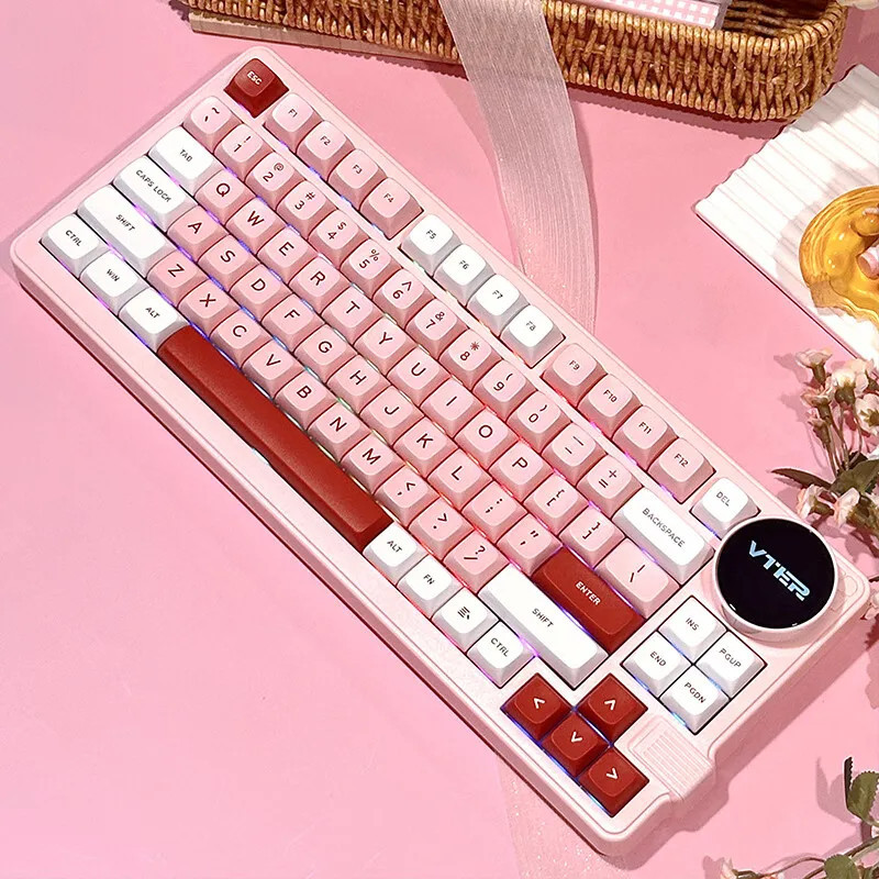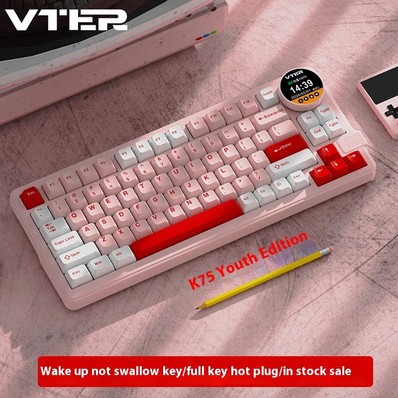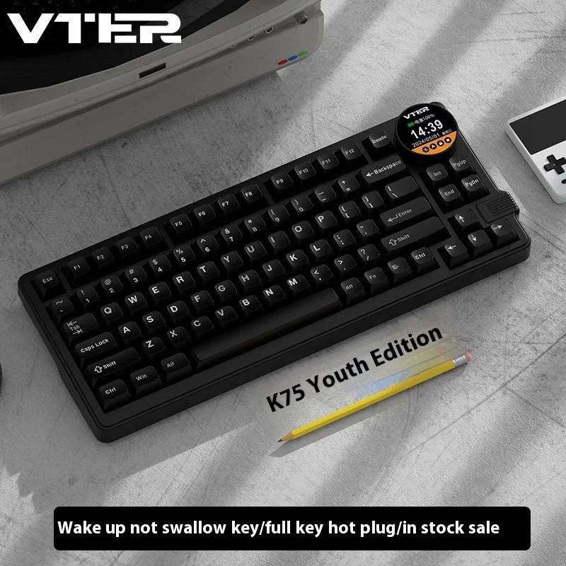 VTER&FEKER K75 Youth Edition Three mode customized mechanical keyboard, Gasket structure, with multimedia knob, smart screen, RGB support hot plug suitable for computers