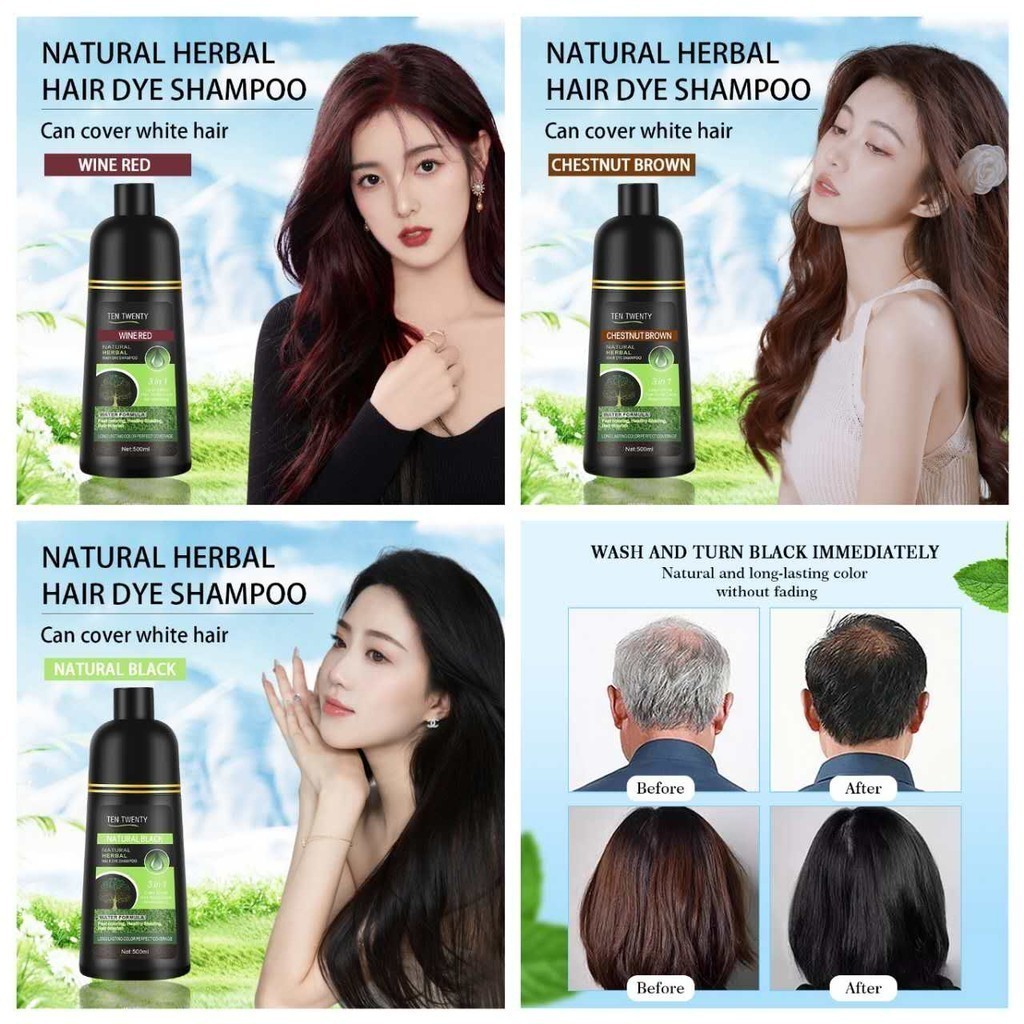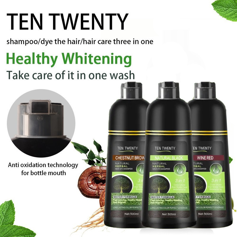 [FDA]TEN TWENTY APPROVED 3-IN-1 NATURAL HERBAL HAIR DYE SHAMPOO LONG LASTING COLOR PERFECT 500mL