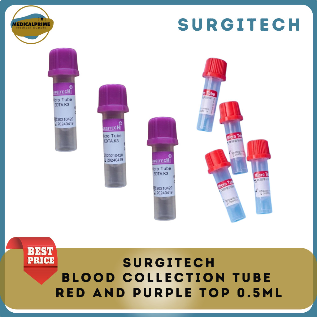 Vacuum Blood Collection Tube (EDTA / RED TOP ) Microtainer 0.5 ml ,100 pcs (SURGITECH/RANDOM)