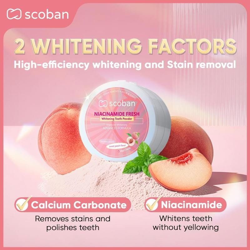 Scoban Whitening Tooth Powder with Niacinamide – 50g Peach Mint Flavor + Freebies | Harriet Trading