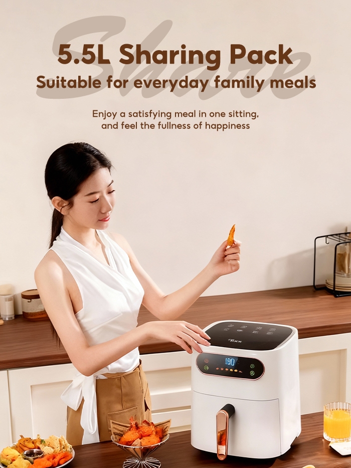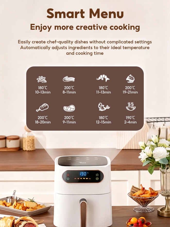 Tixx 5.5L Air Fryer Intelligent Control 1350W Power Non-stick Coating With Flexible Timer Smart Menu