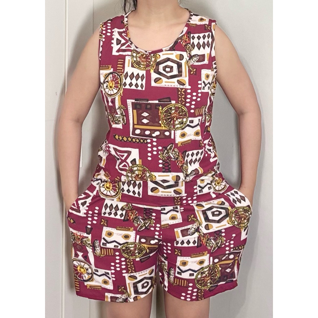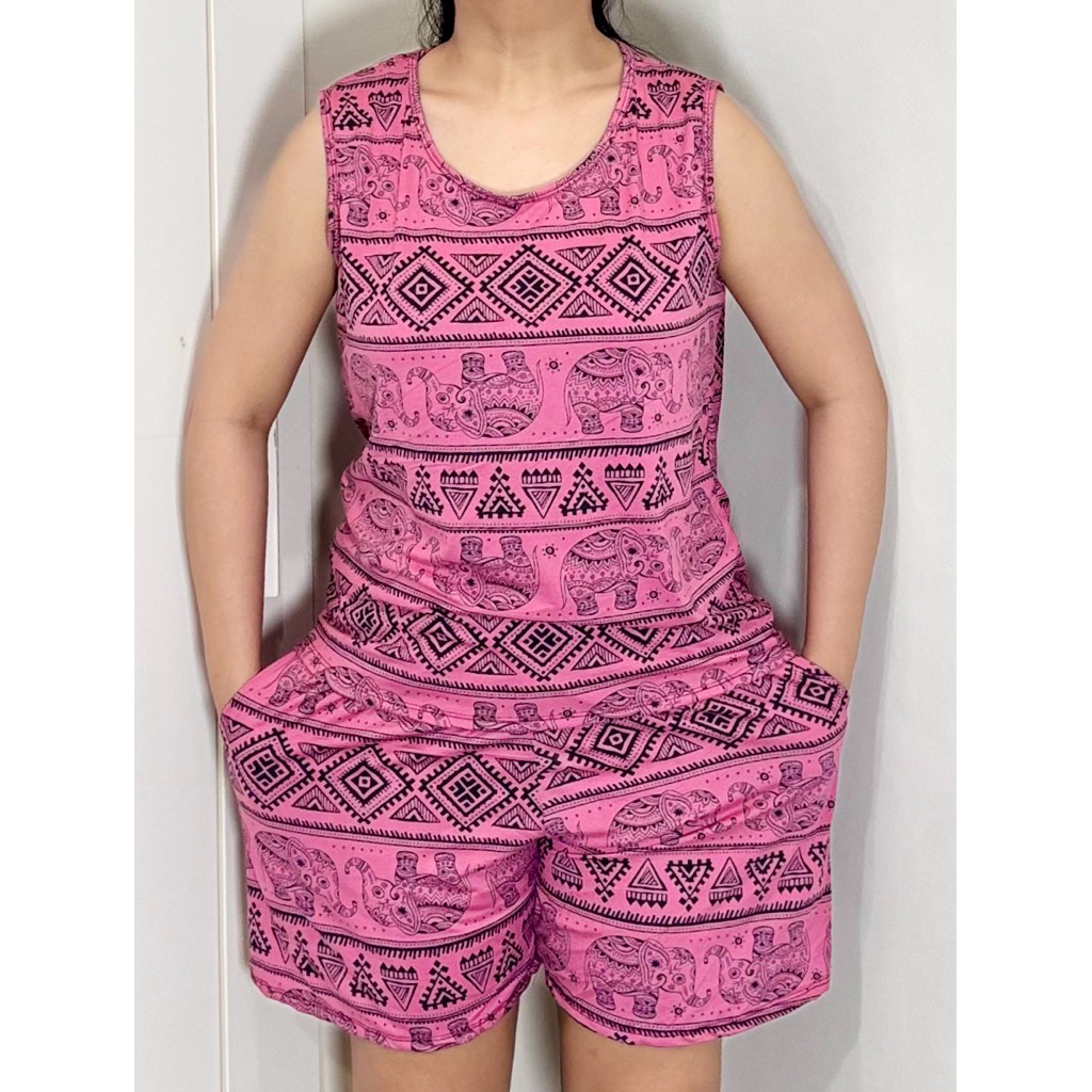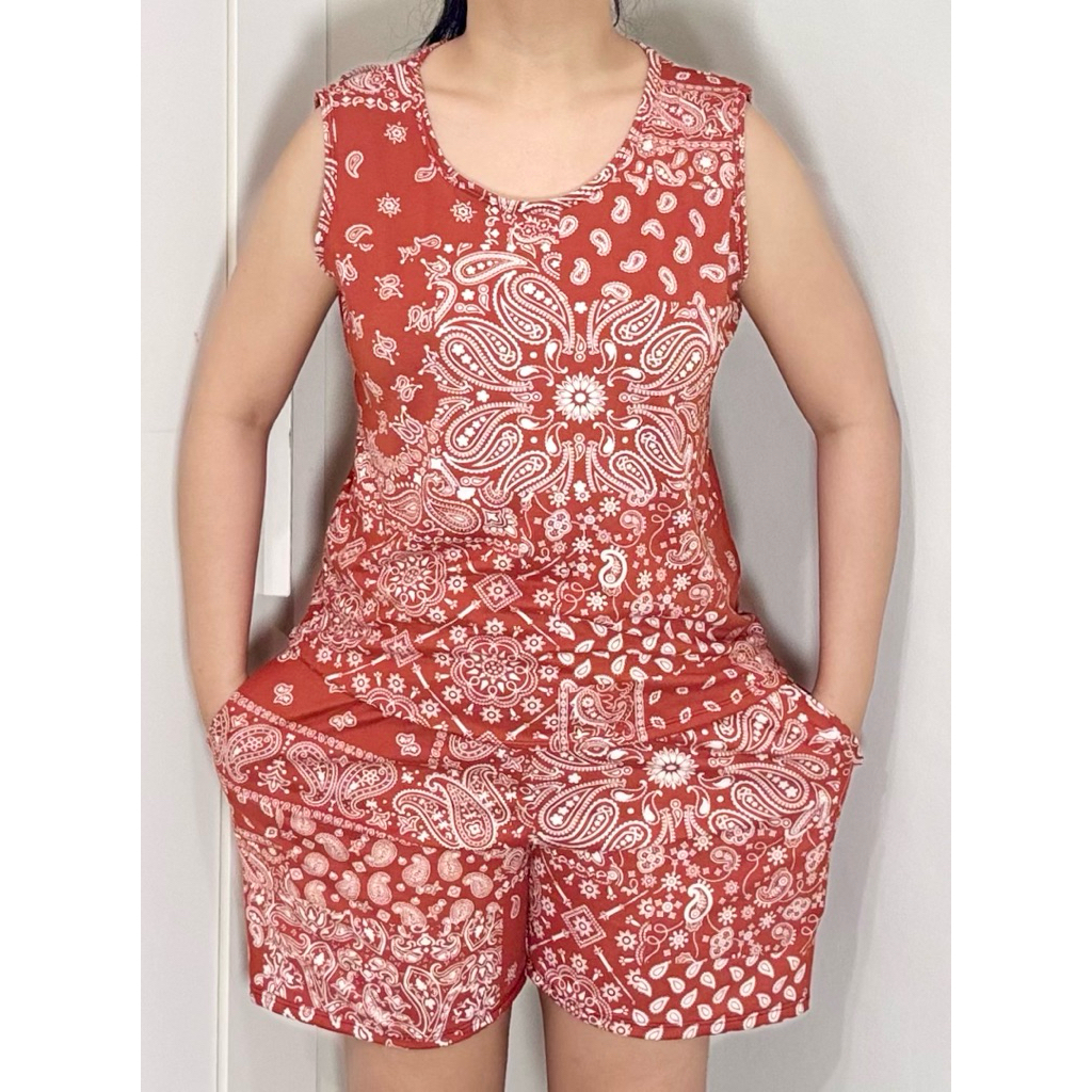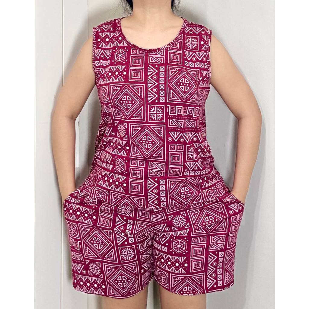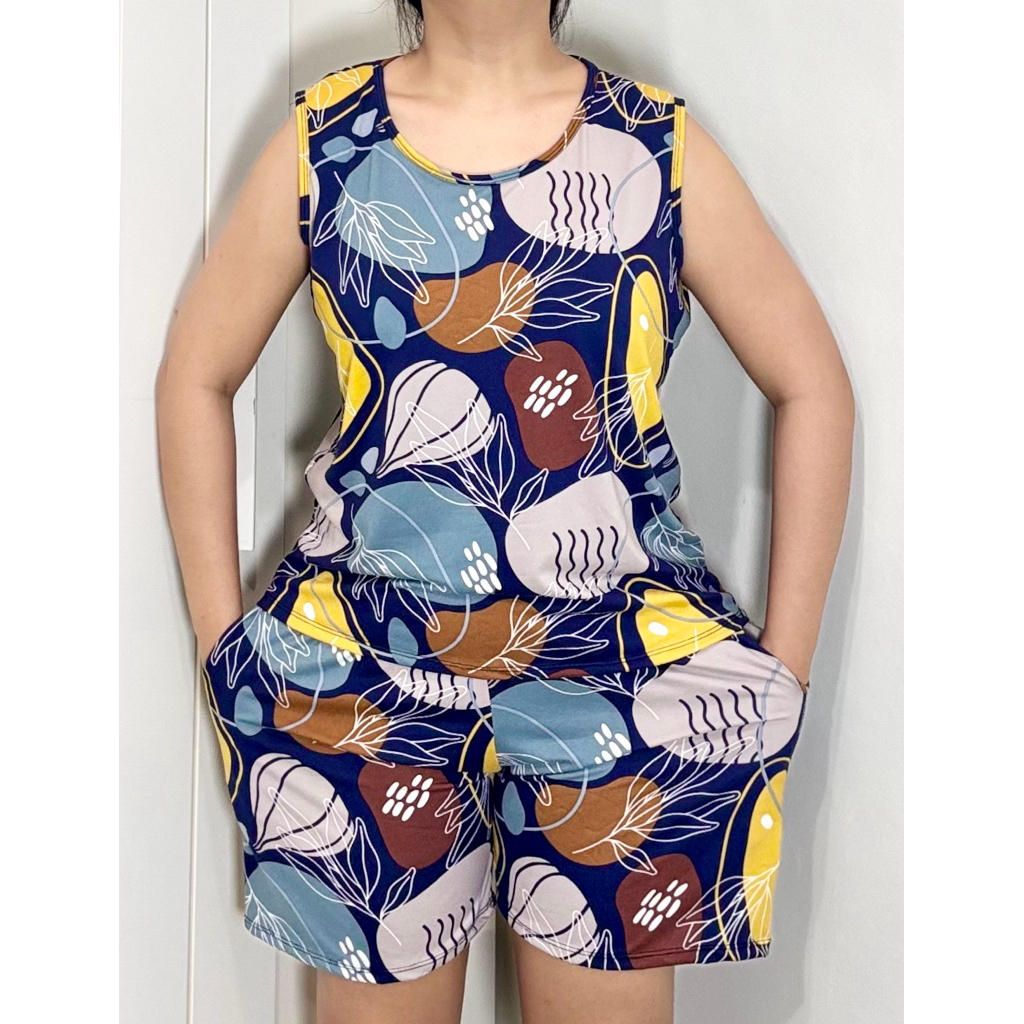 TERNO - Printed Sleeveless and Shorts Pambahay Pantulog for Adults w/ Two Side Pockets