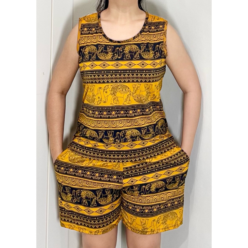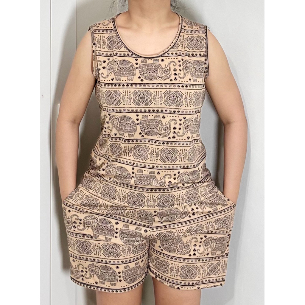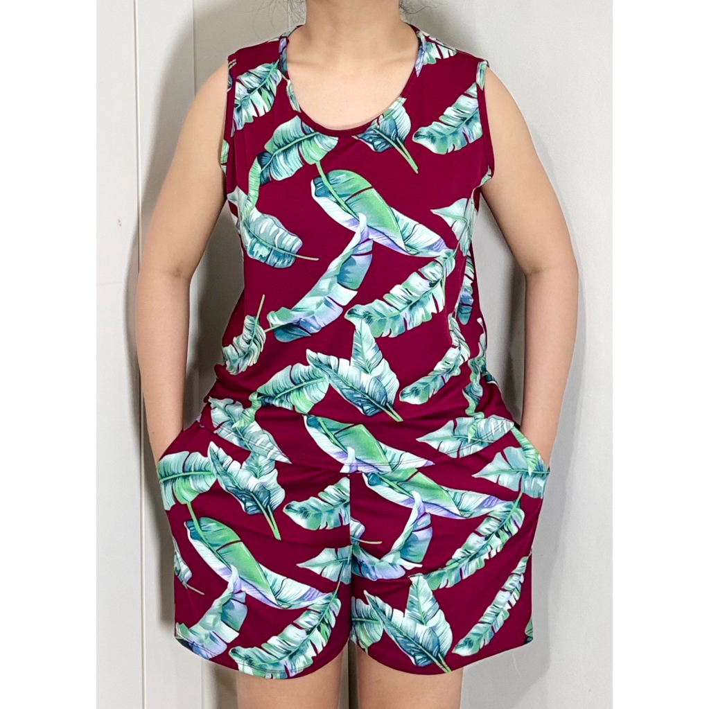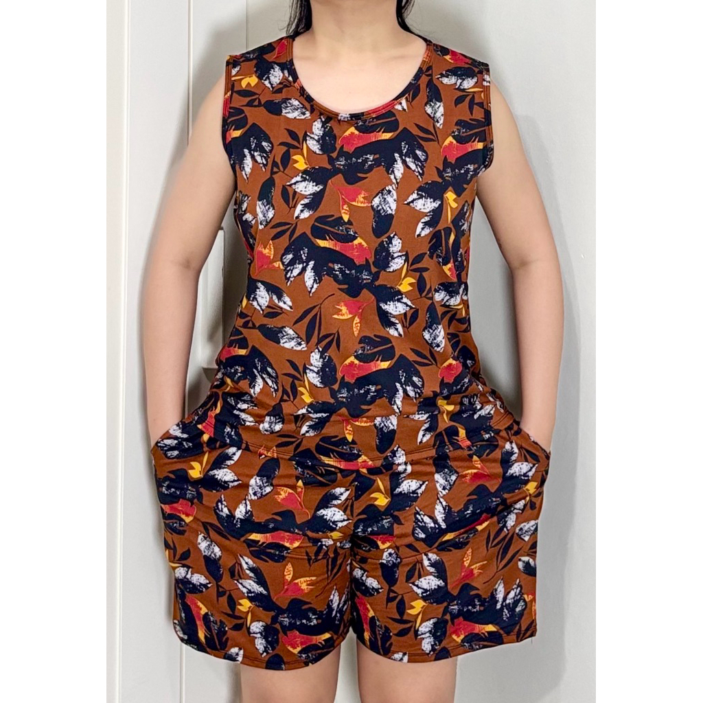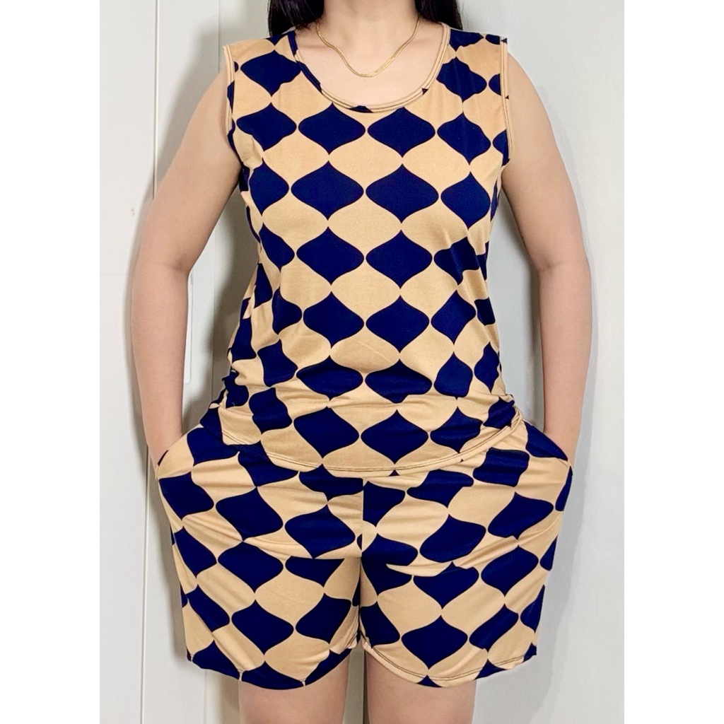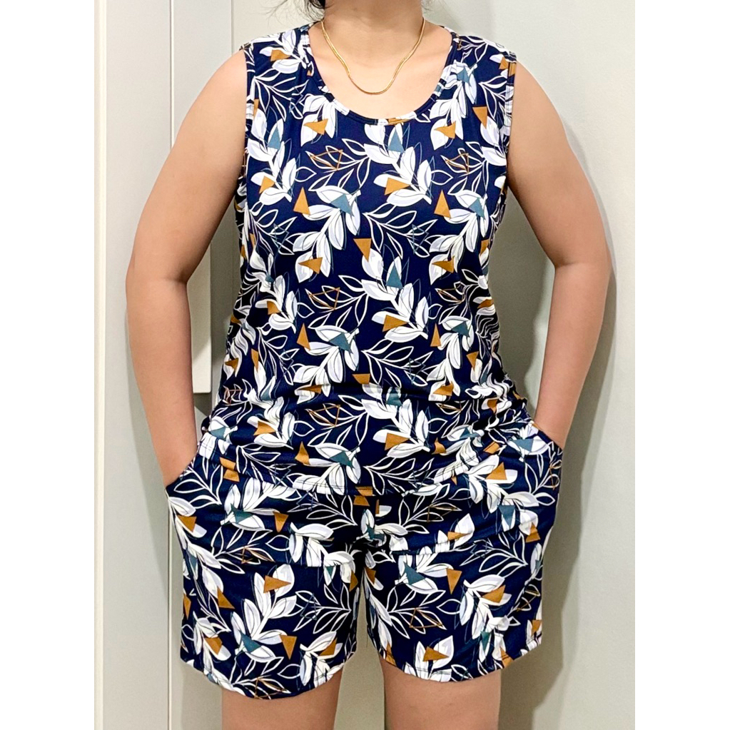 TERNO - Printed Sleeveless and Shorts Pambahay Pantulog for Adults w/ Two Side Pockets