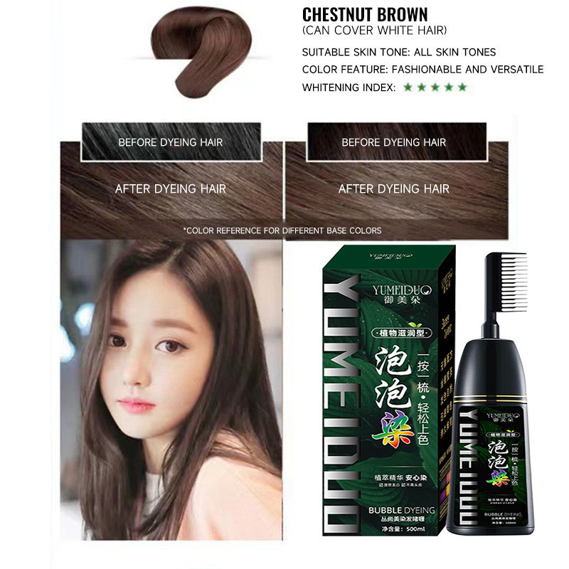 Black/Brown/Chestnut Dye Hair Color Shampoo Long Lasting Color Herbal Hair Dye Permanent Color 500ml