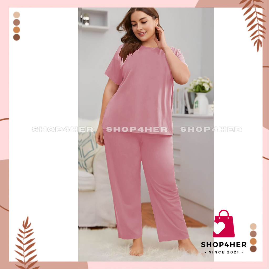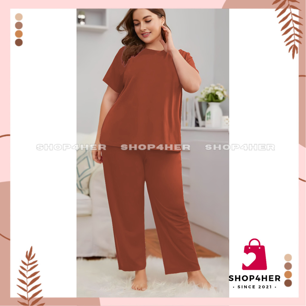 SHOP4HER | [S-3XL ] Kendra Plain Adult T-Shirt Pajama Terno Sleepwear FreeSize Plus Size 2XL Unisex