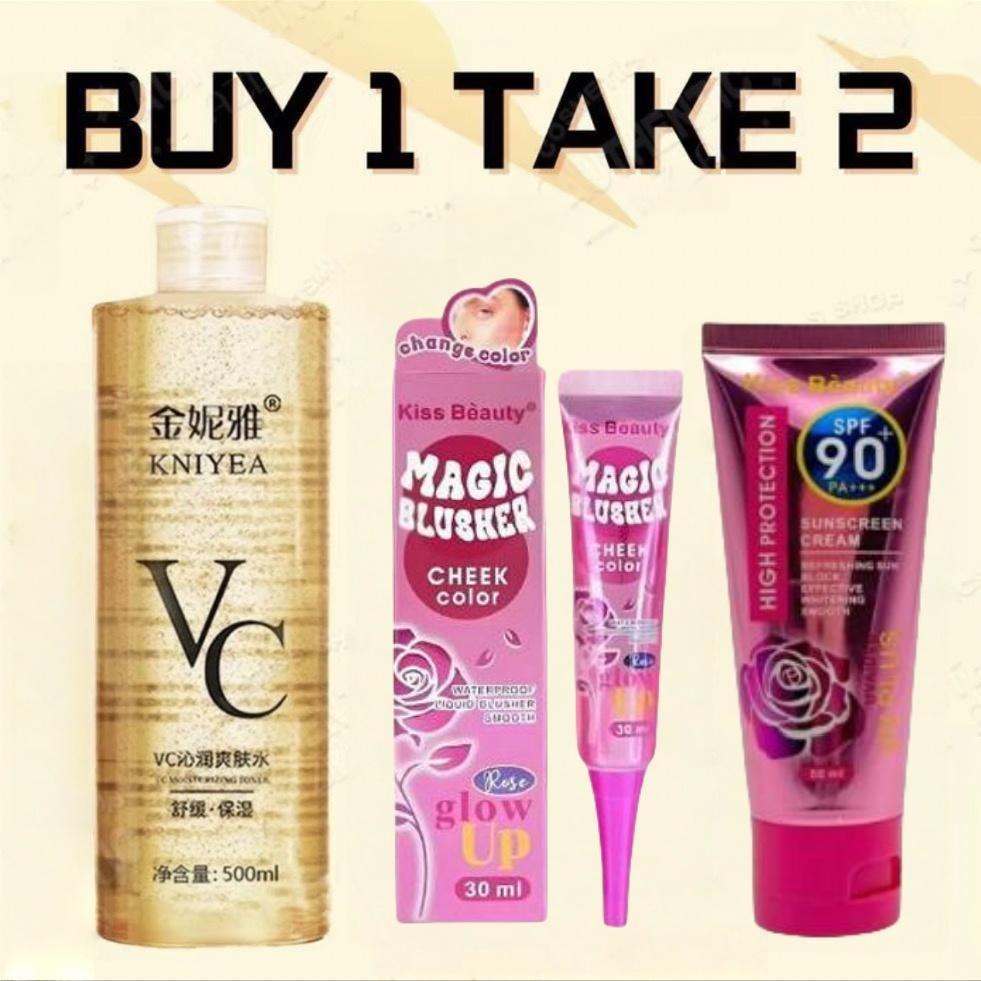 [BUY 1 TAKE 2] 500ML Vitamin C Toner + 30ml MAGIC BLUSHER + 60ml Whitening Facial Sunscreen Cream