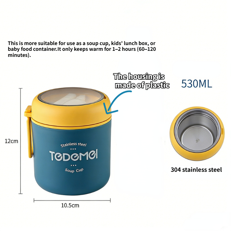 530mL Vacuum Soup Cup Stainless Steel Insulated Cup Food Container Mini Cup Lunch Box Jar