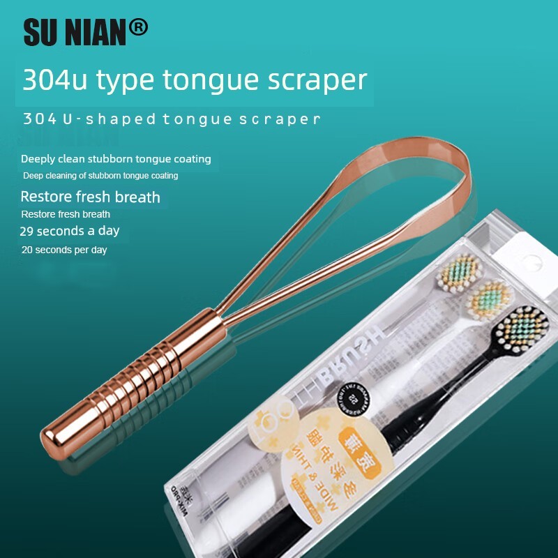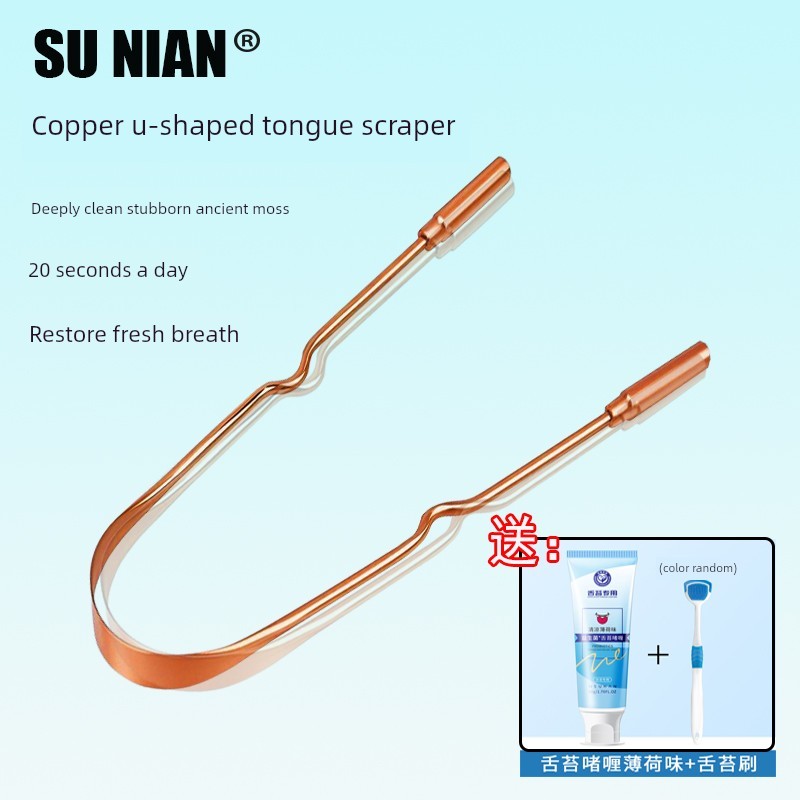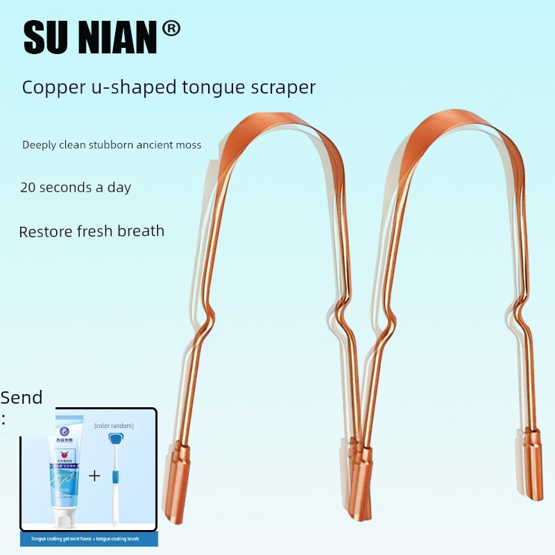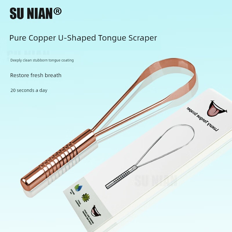 German Brand Tongue Coating Cleaner Single Handle Tongue Scraper Copper Pure Copper Tongue Coating Scraping Tongue Coating Brush Clean Oral
