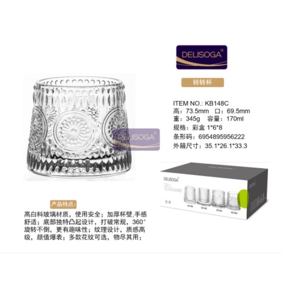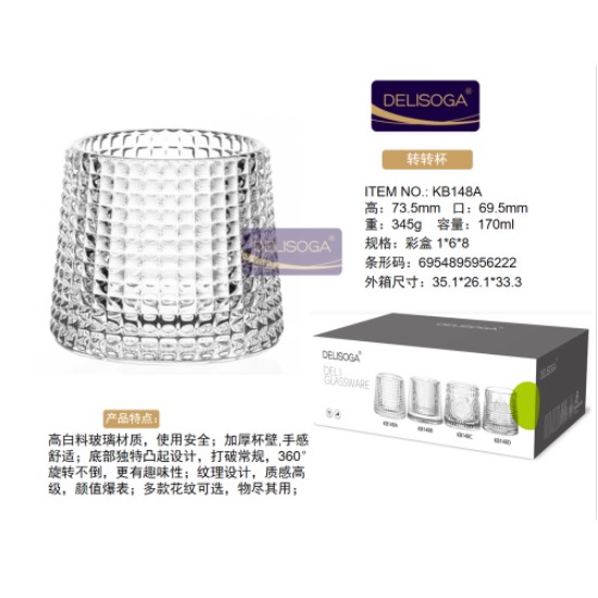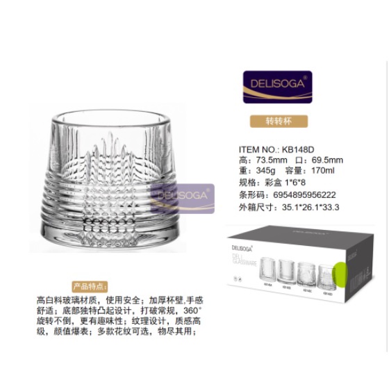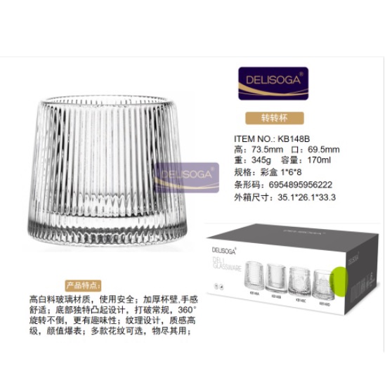 ZM KB148A/B/C/D 170ml Creative rotating whiskey glass bar glass trapezoidal wine glass, (1pc/6pcs)