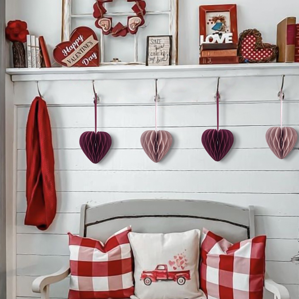 Valentine's Day Paper Lantern Decoration Qixi Theme Marriage Proposal Wedding Party Wedding Room Layout Round Heart Shape Honeycomb Ball Hanging Decorations Party Decor