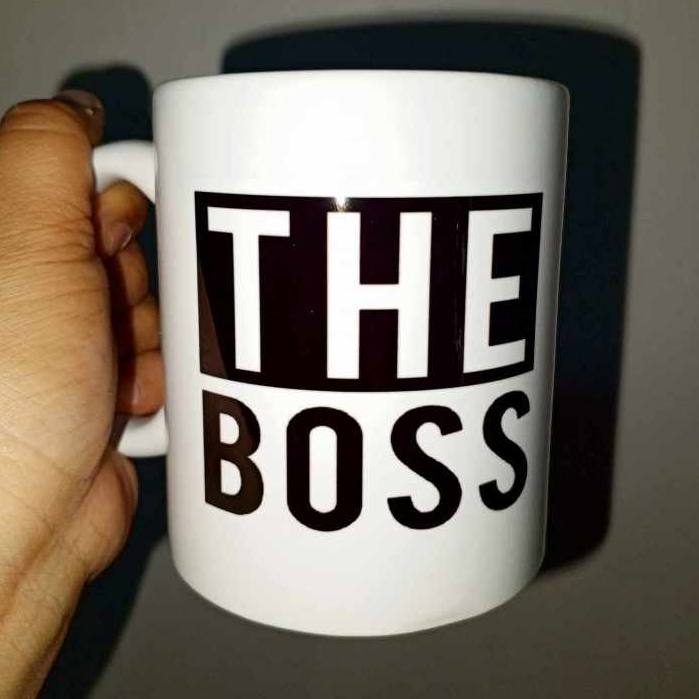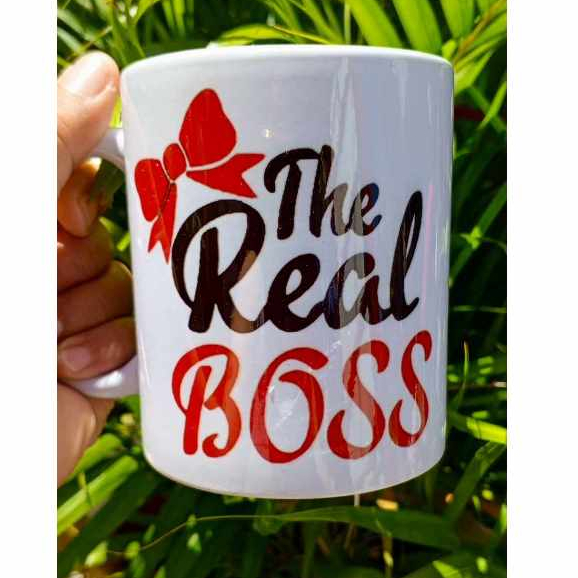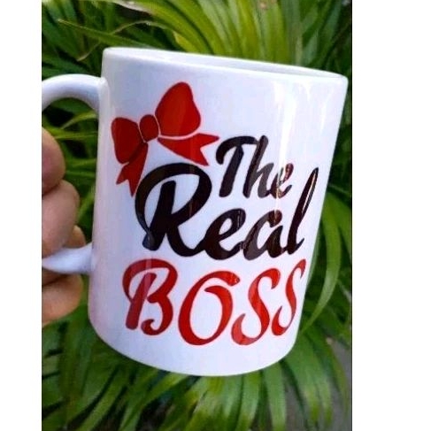 Valentine design white mug 11oz The Boss/The Real boss mug design with box
