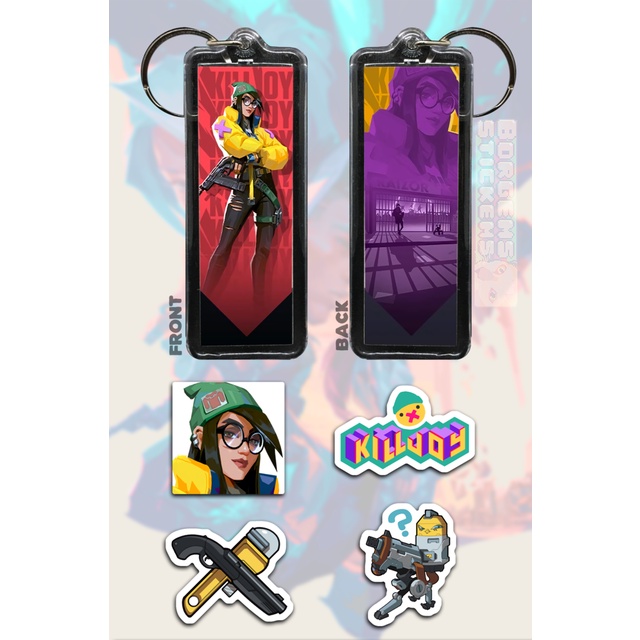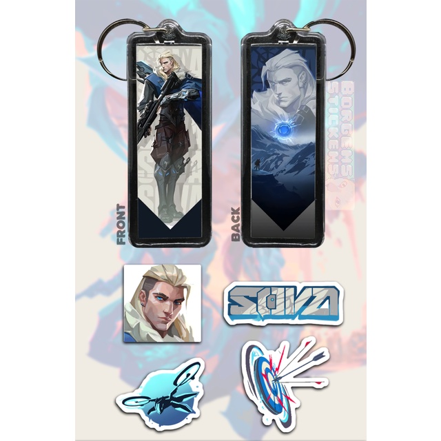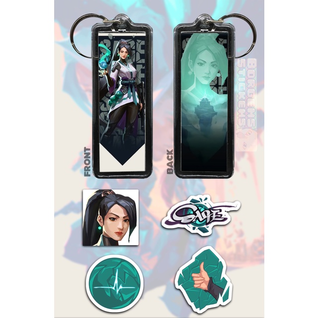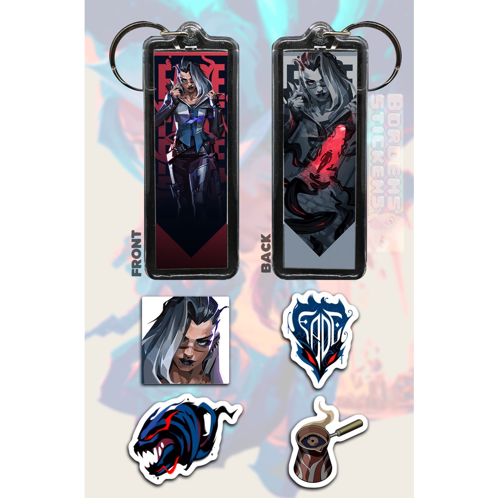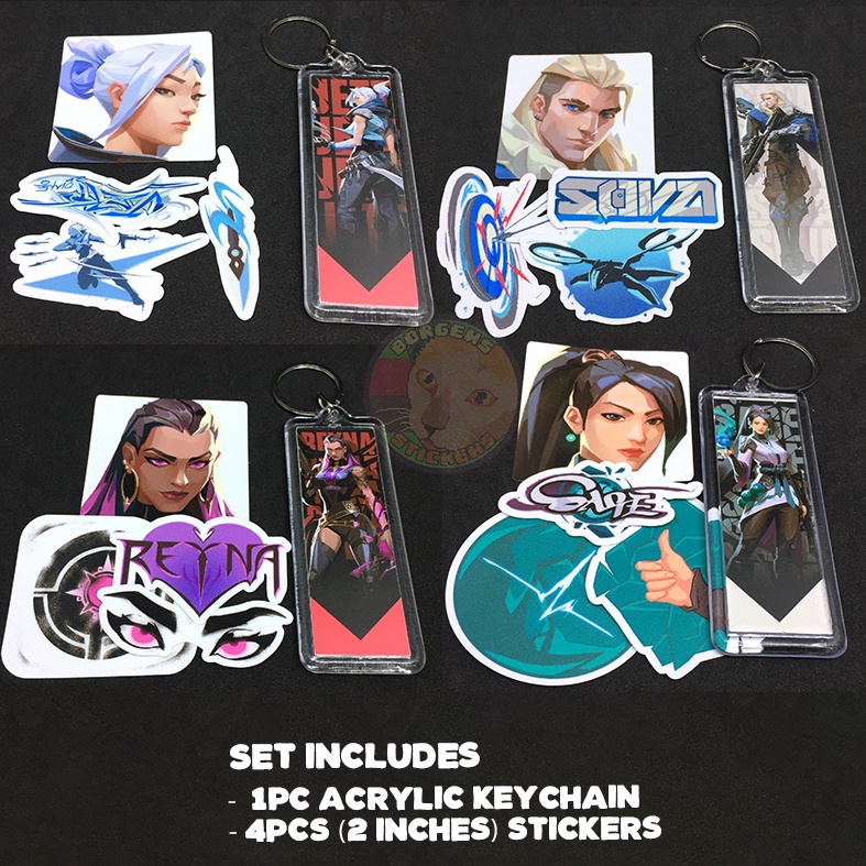 Valorant Agents Acrylic Keychain with Vinyl Stickers set. Valorant Game. Sage Jett Reyna Omen Sova