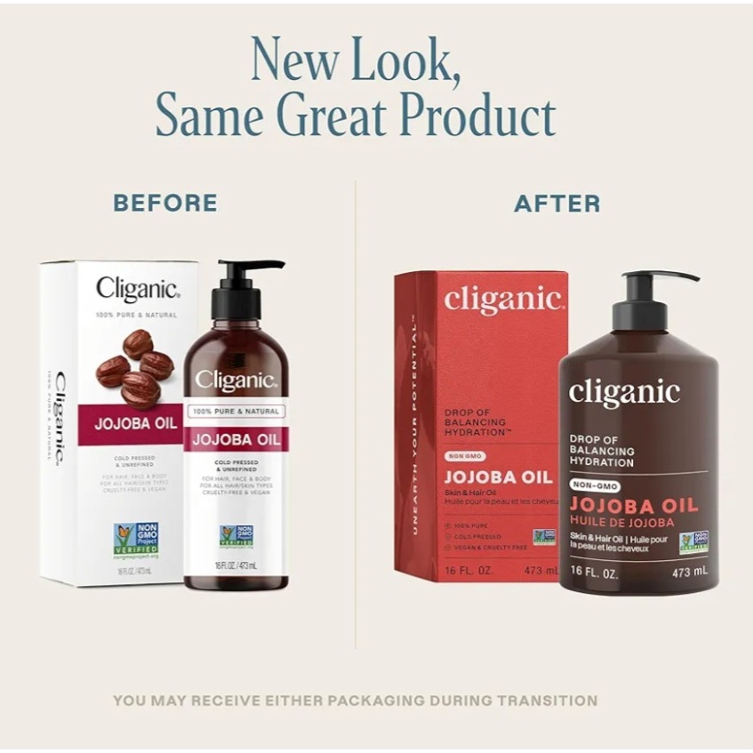 Cliganic Organic Jojoba Oil, 100% Pure 120ml or 473ml, Moisturizing Oil for Face, Hair, Skin & Nails