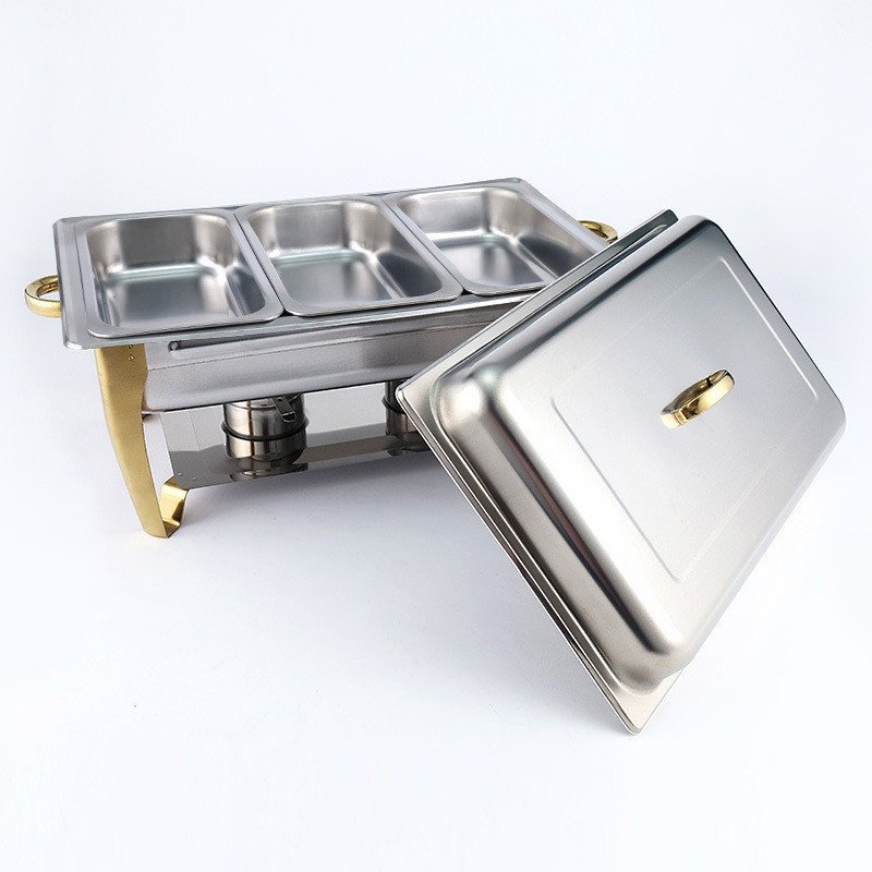 Restaurant Insulated Cross-Border Source Container Gold-Plated Food Square Hotel Alcohol Pot Stainless Steel Compartment Buffet Stove DYOU