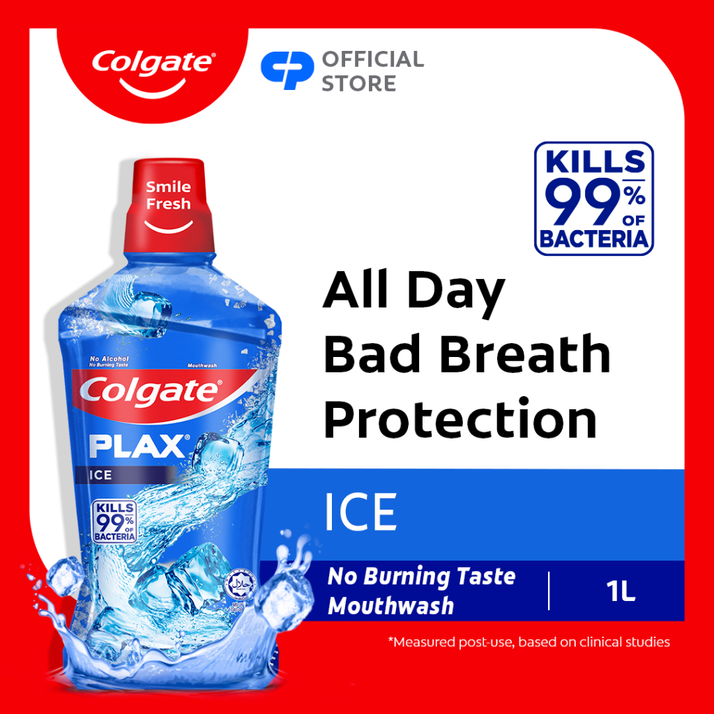 Colgate Plax Antibacterial Mouthwash Ice, No-Alcohol, Long-Lasting Freshness 1L