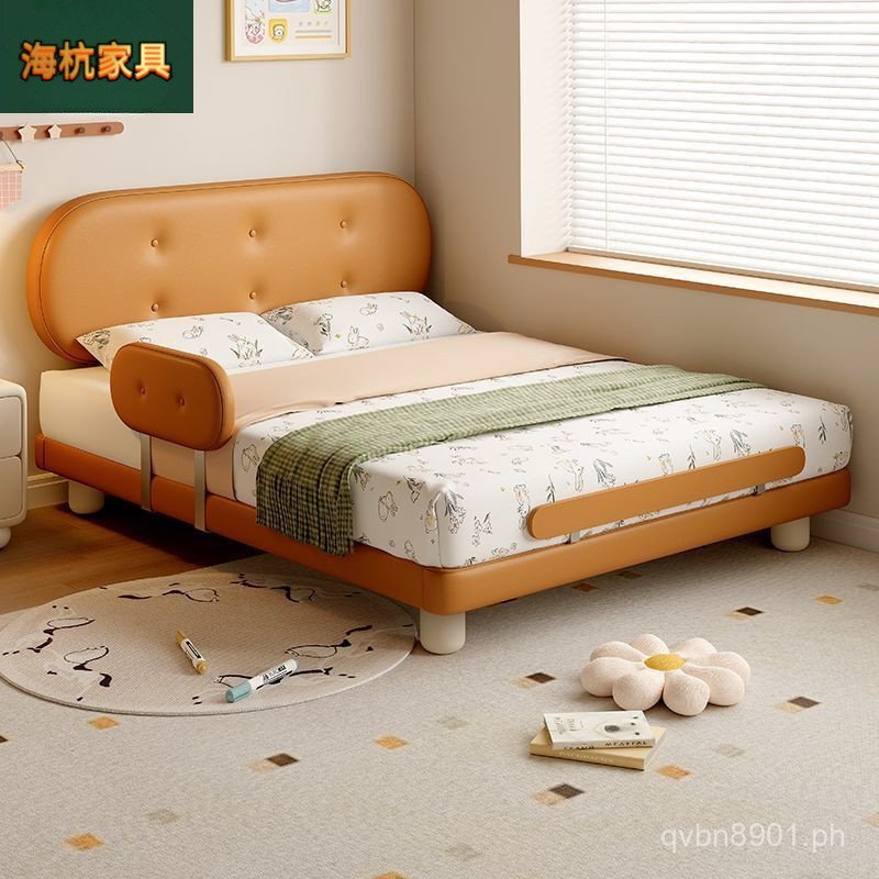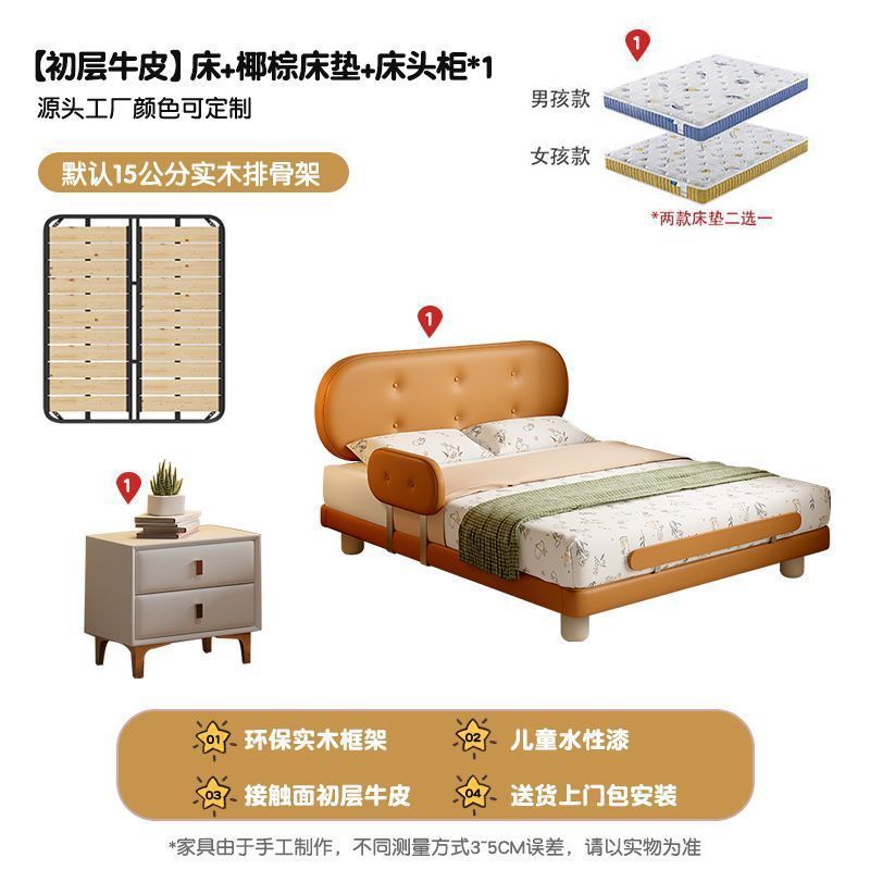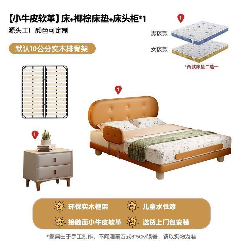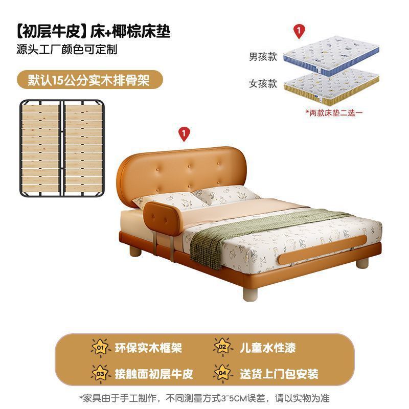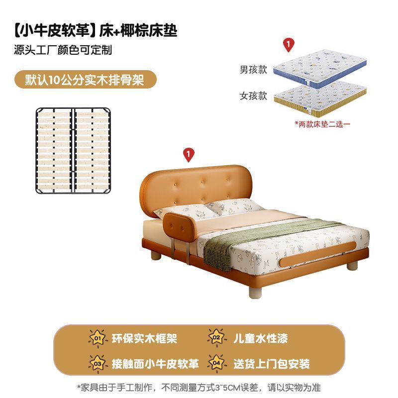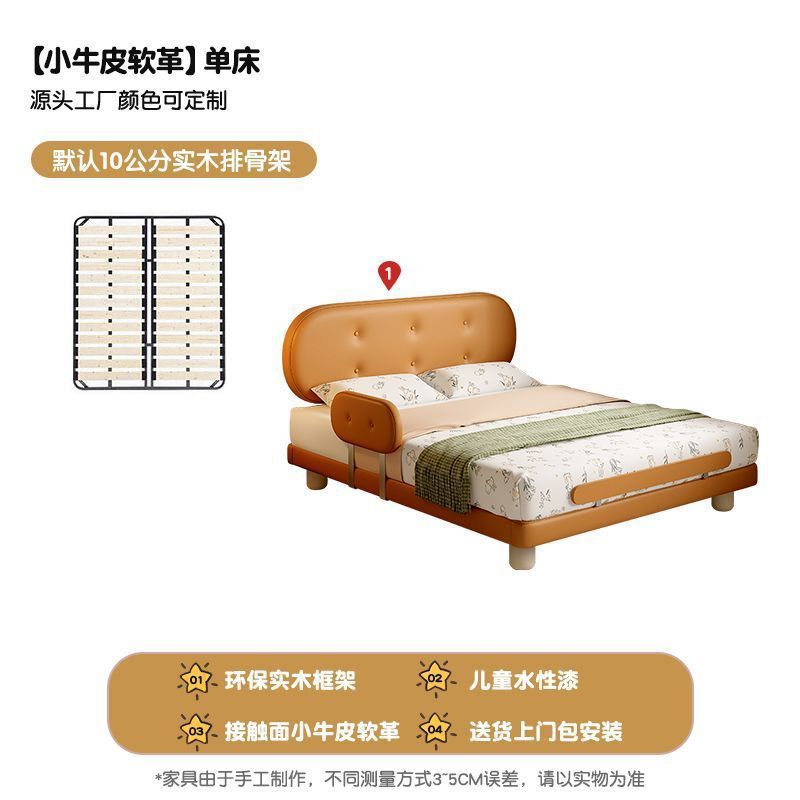 Guardrail Children's Bed Modern Bed Small Apartment Single Bed Children's Biscuit Simple Children's Room Ventilation Cowhide Top Layer IZ2R