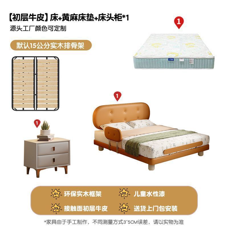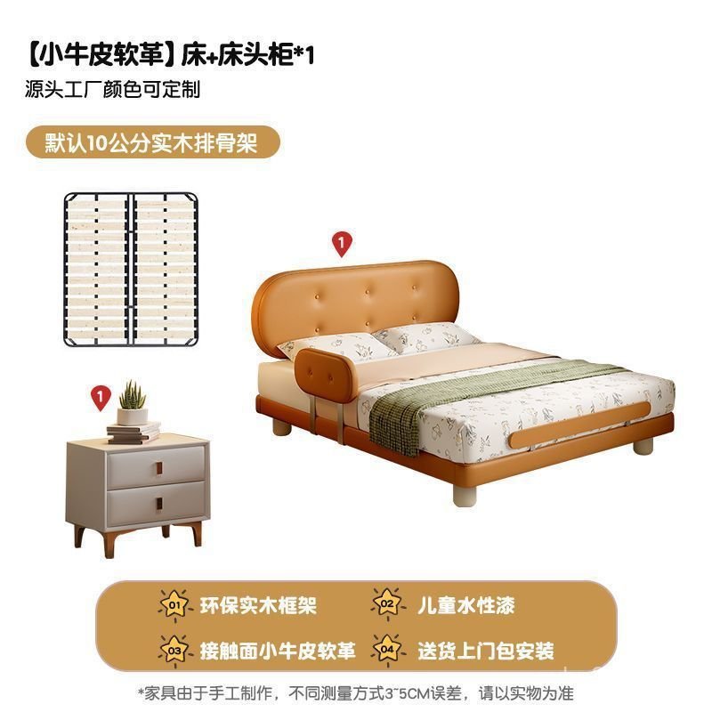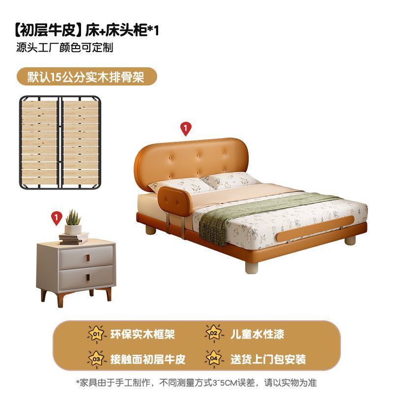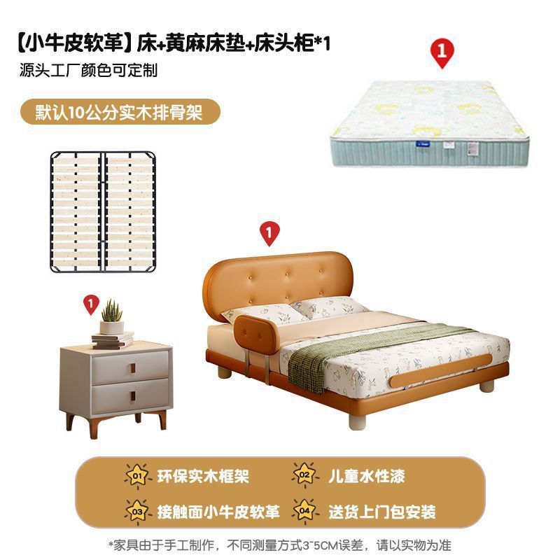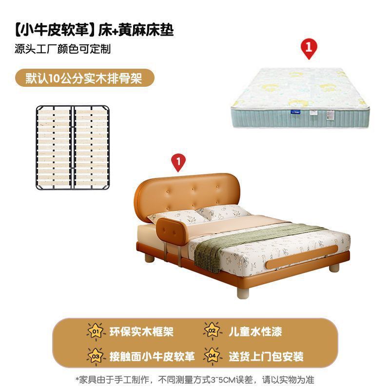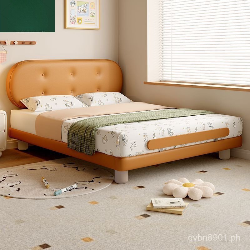 Guardrail Children's Bed Modern Bed Small Apartment Single Bed Children's Biscuit Simple Children's Room Ventilation Cowhide Top Layer IZ2R