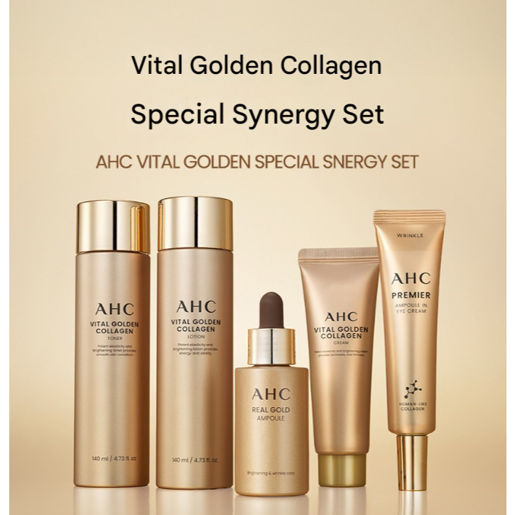 [Korea] Authentic | AHC | Vital Golden Collagen Special Synergy Set | Anti-Aging Skincare | Firming & Radiance Care | 5-Step Skincare Set