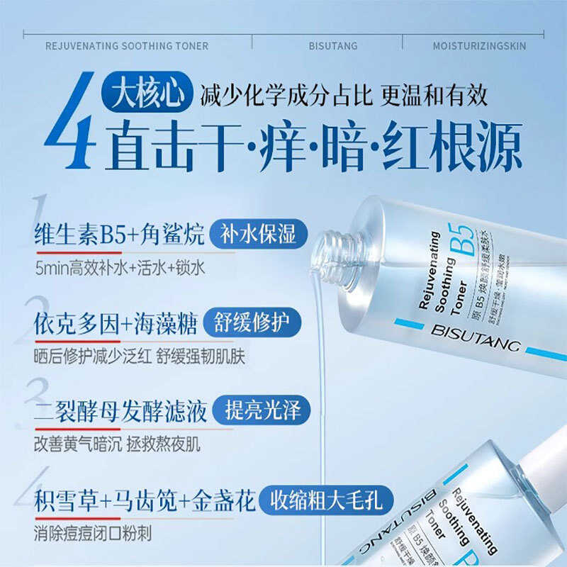Bisutang B5 Centella Asiatica Soothing Toner Men Women Moisturizing Shrink Pores Oil Control Brightening Wet Pack Water
