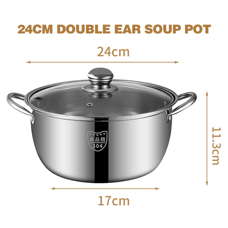 304 Stainless Steel Pot - Double Handle Casserole, Steamer, Non-Stick Pan, Super Large Capacity Tool