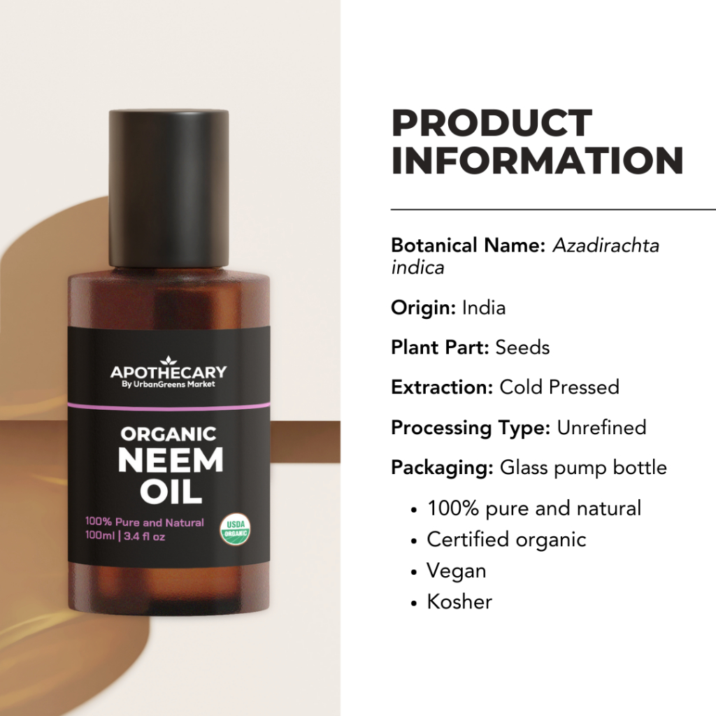 Organic Neem Oil, 100% Pure and Natural Carrier Oil, Premium Quality