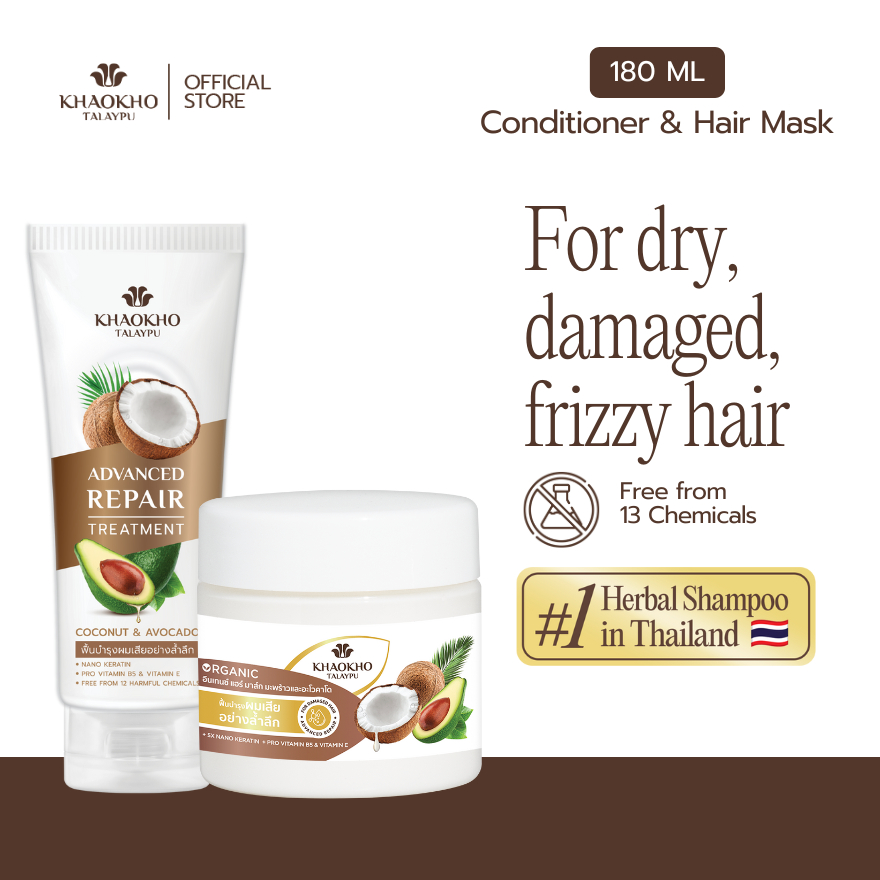 KHAOKHO TALAYPU Anti-Frizz Coconut & Avocado Hair Rescue Set [Damage Repair, Treatment, Hair Mask]