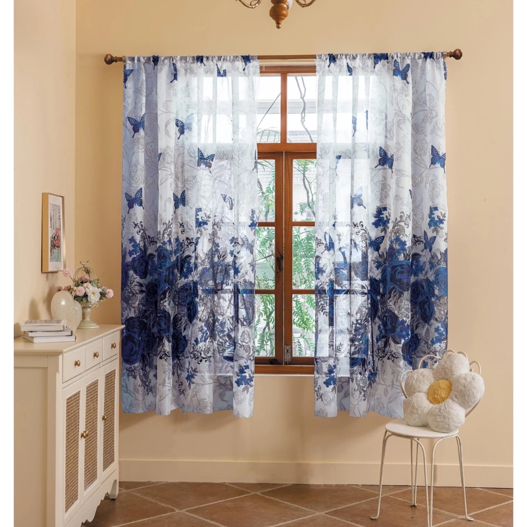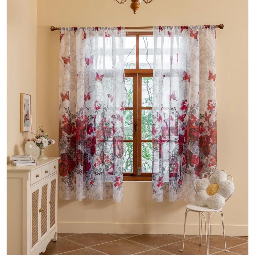 COD Elegant Butterfly Catkins Curtain Sale New Design Leaf Kurtina for Windows Door Room Decor 1PC