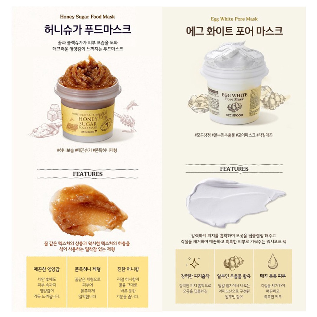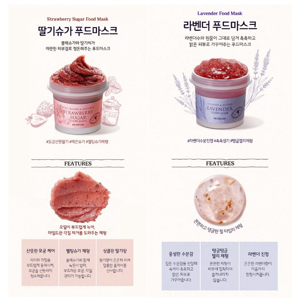 [SKINFOOD] Wash Off Mask (Egg, Black Sugar, Strawberry, Rice, Lavender, Pear Mint, Apricot, Honey Sugar) face scrub / face moisturizer
