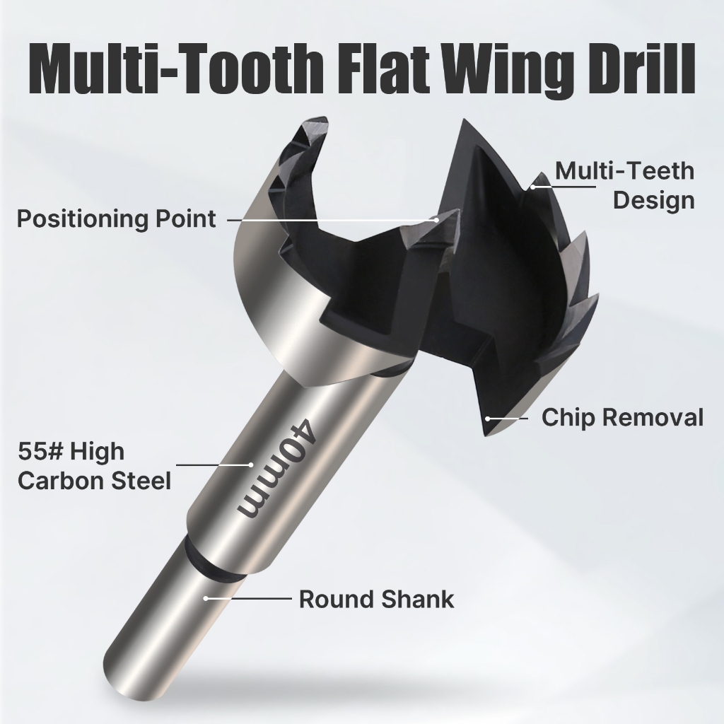 Vearter 1Pc 6mm-55mm Forstner Woodworking Tools Hole Saw Hinge Boring Drill Bits Round Shank High Carbon Steel Cutter