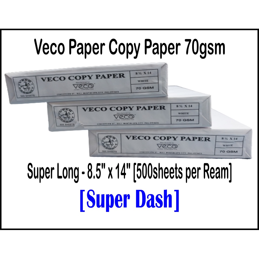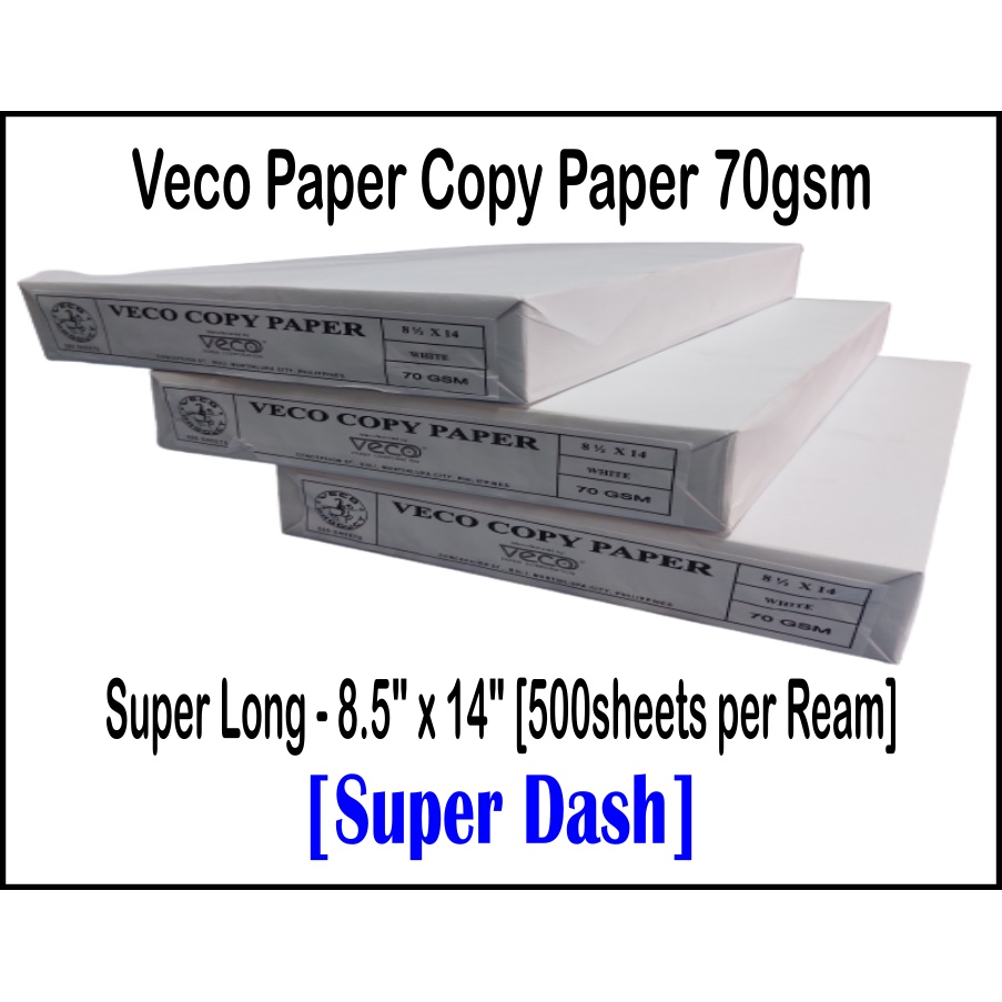 Veco Paper Copy Paper - Super Long 8.5"x14" 70gsm Sub 20 Bond Paper [500sheet per Ream] [Super-Dash]