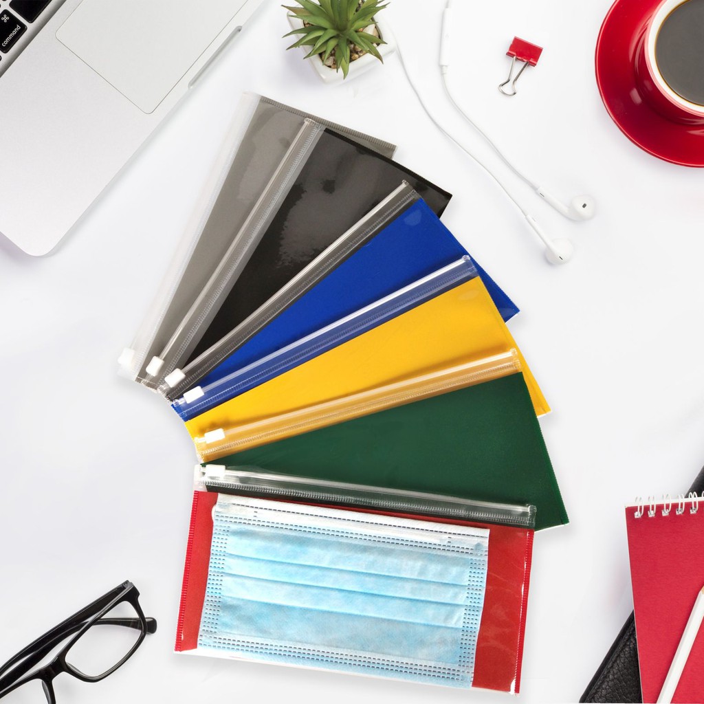 Veco Pouch with zip clear with colored partition plastic envelope organizer 8.25 x 4.38 in (6pcs)