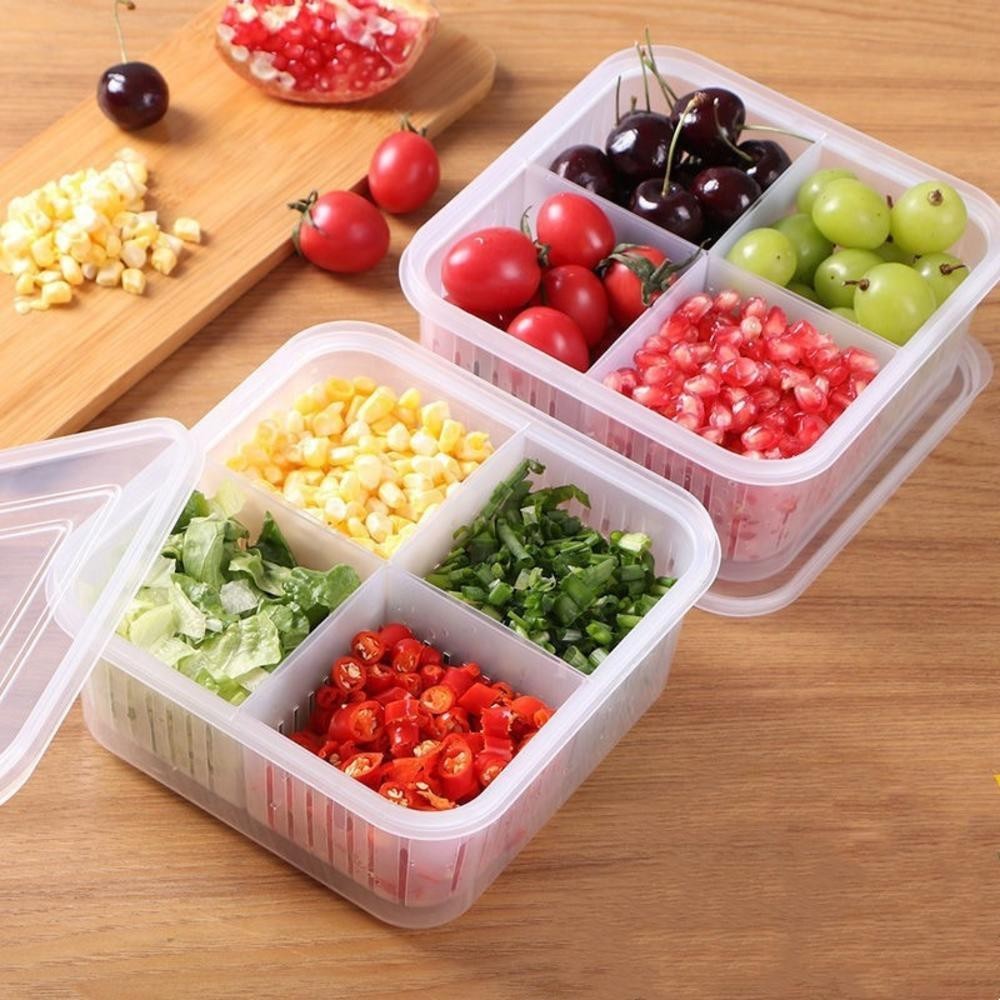 Veggie Tray with Lid Stackable Vegetable Storage Appetizer Relish Serving Platter with 4 Compartment Snack Containers for Food Fruit Refrigerator Organizer Bins