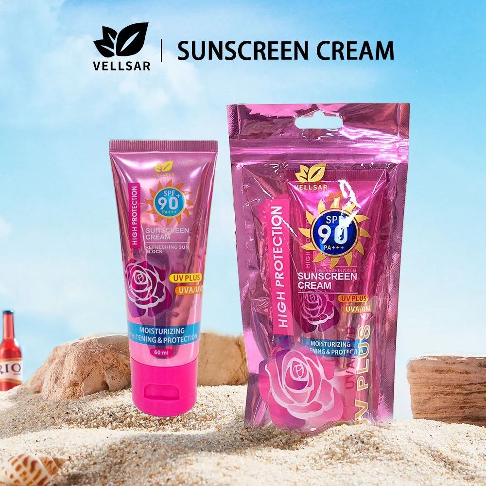 Vellsar Sunscreen Cream SPF 90 High Protection with Whitening Moisturizing for Facial Sun Care 60ml