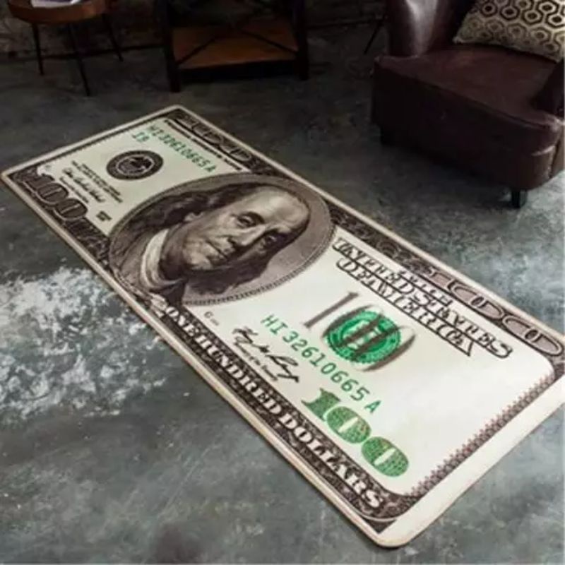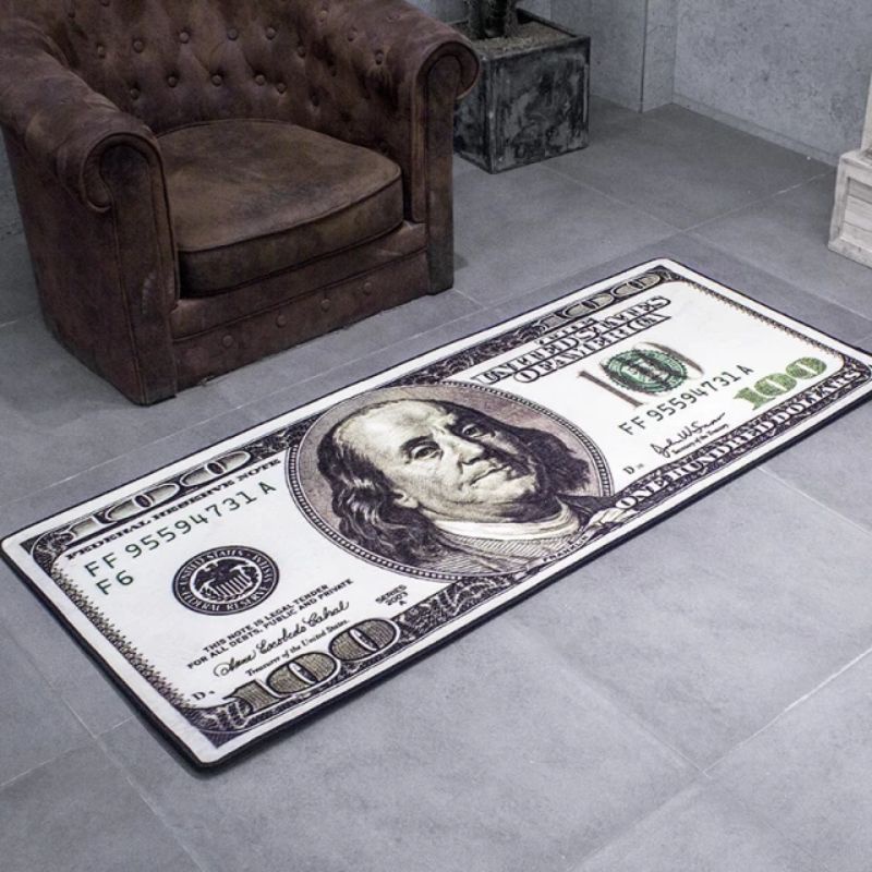 Velvet 100 Dollar Carpet Bill Rug or Money Carpet (80*200cm, 45*100cm) with Non Slip Backing #S