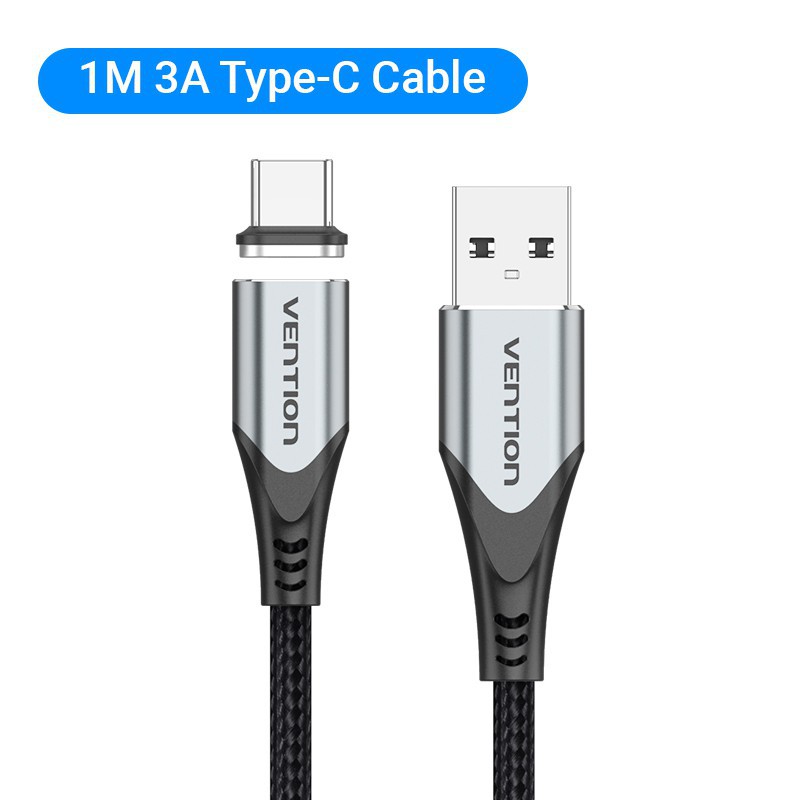 Vention 3A Fast Charging Magnetic Reversible Cable Micro USB Type C Cable for Smartphone