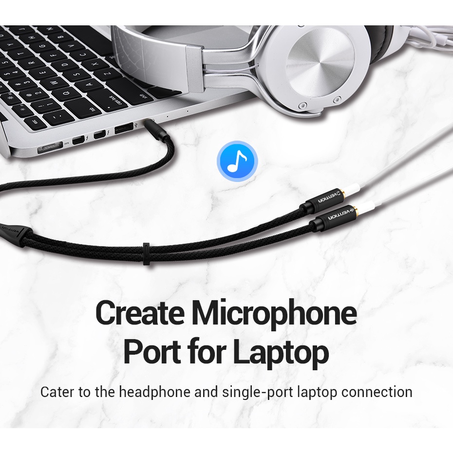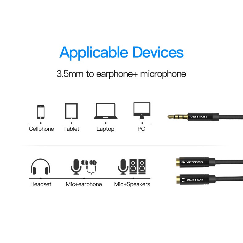 Vention Audio Splitter Aux Cable Jack Male To Female Mic Y-Splitter Cord Headset Adapter 3.5Mm
