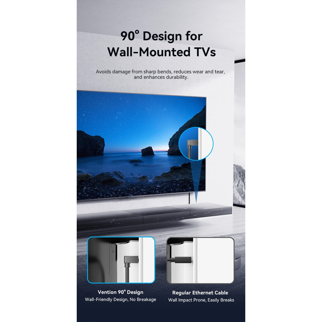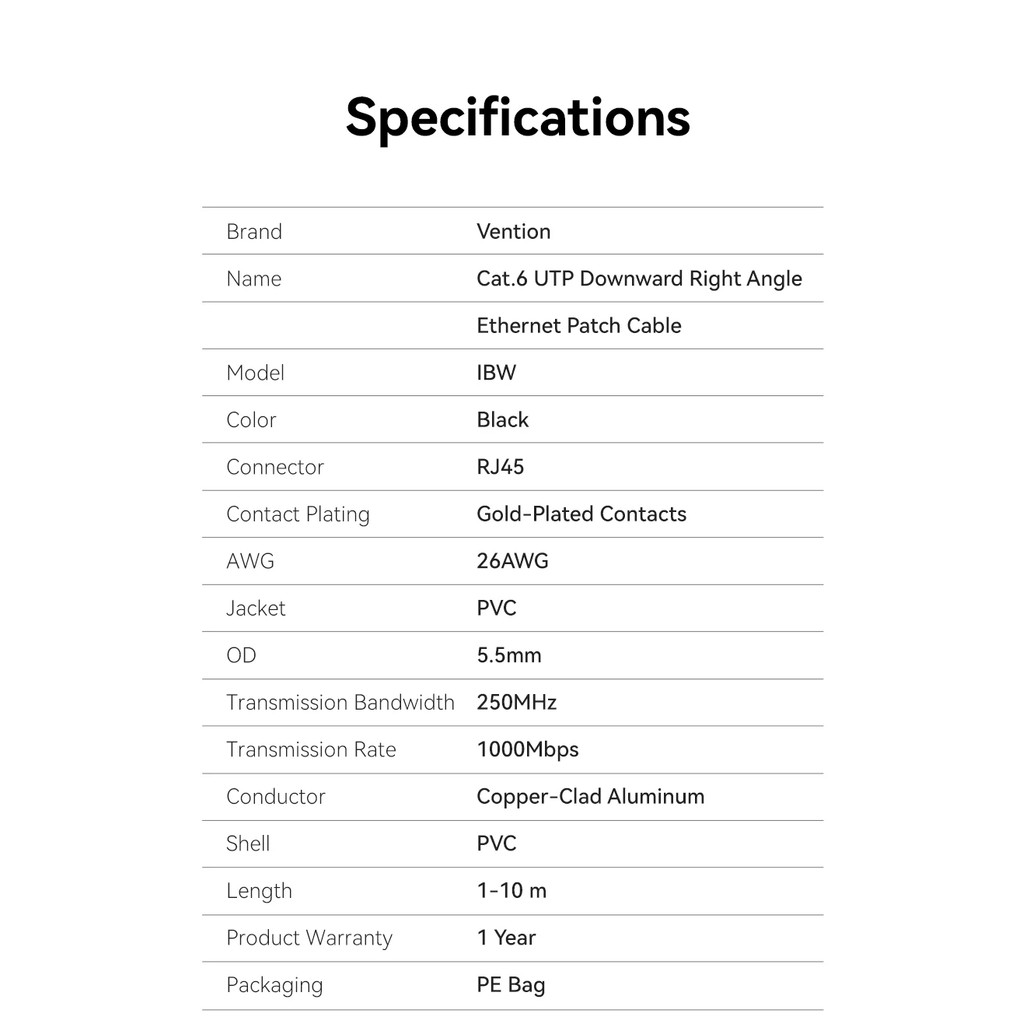 Vention Ethernet Cable Cat6 UTP 90 Degree Downard Right Angle Patch Cord