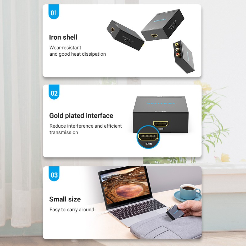 Vention HDMI to 3RCA CVBS AV Composite Video Adapter Supports PAL NTSC