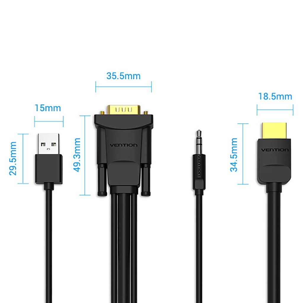 Vention HDMI to VGA Cable with 3.5mm and USB Output 1080p 60Hz (ABIB) 1M, 1.5M, 2M, 3M